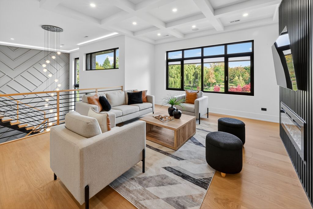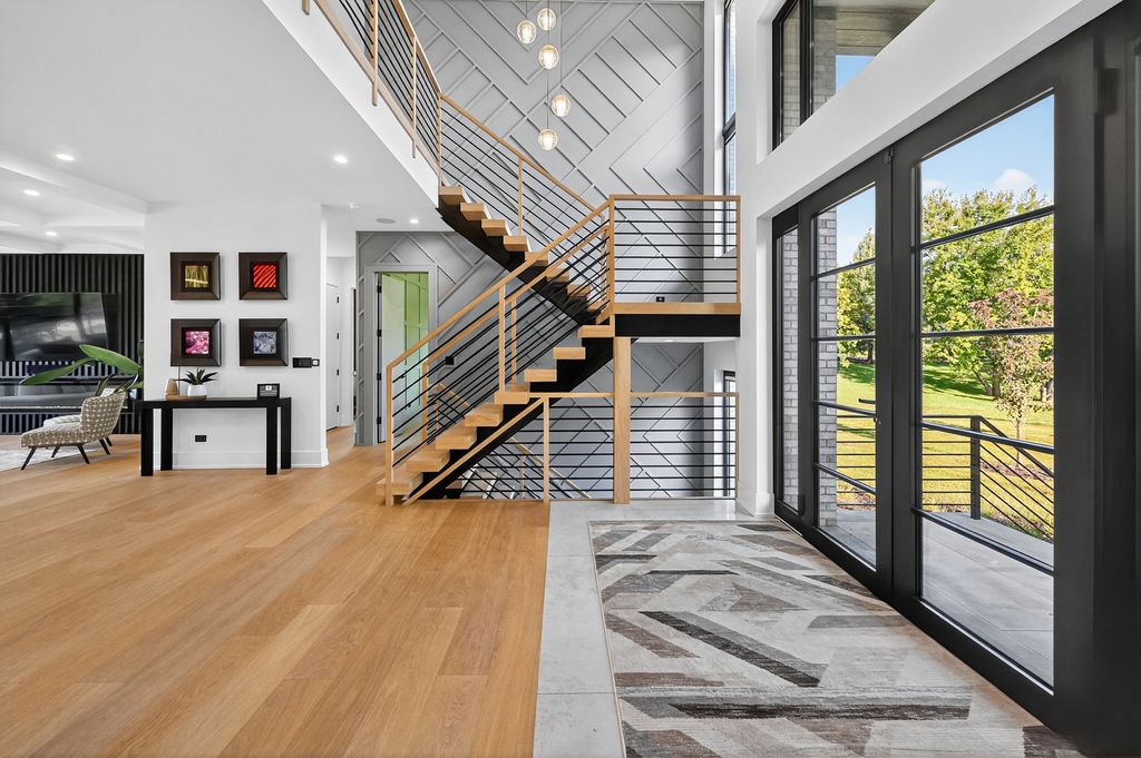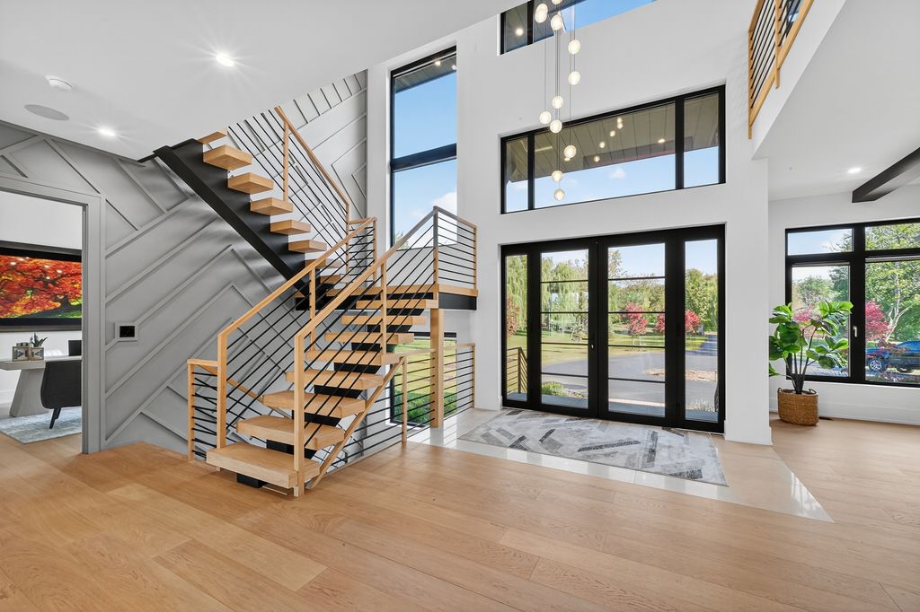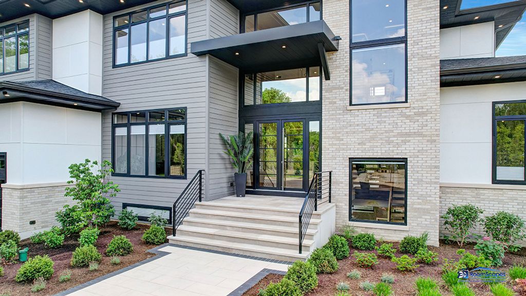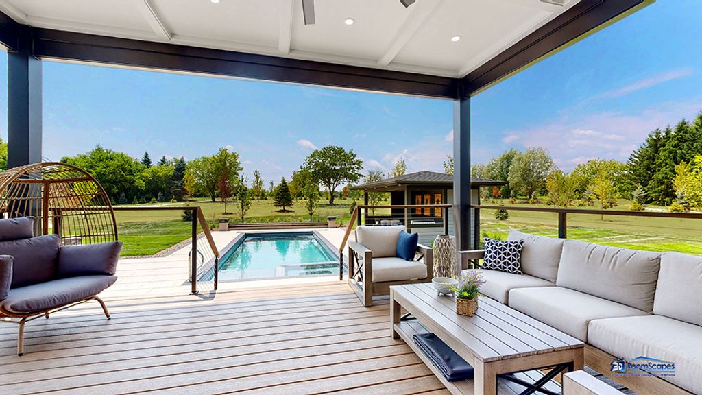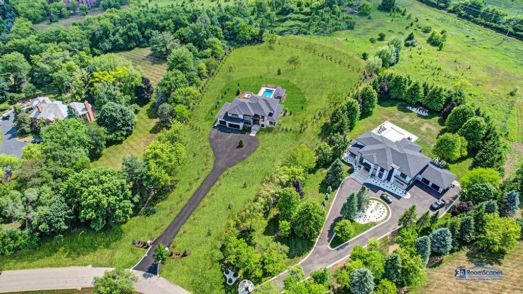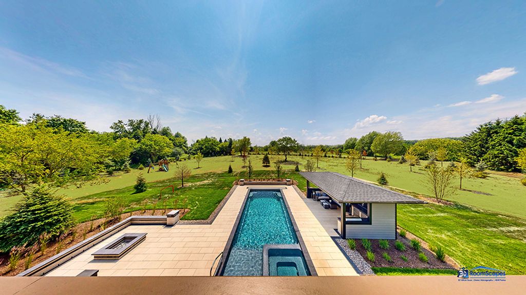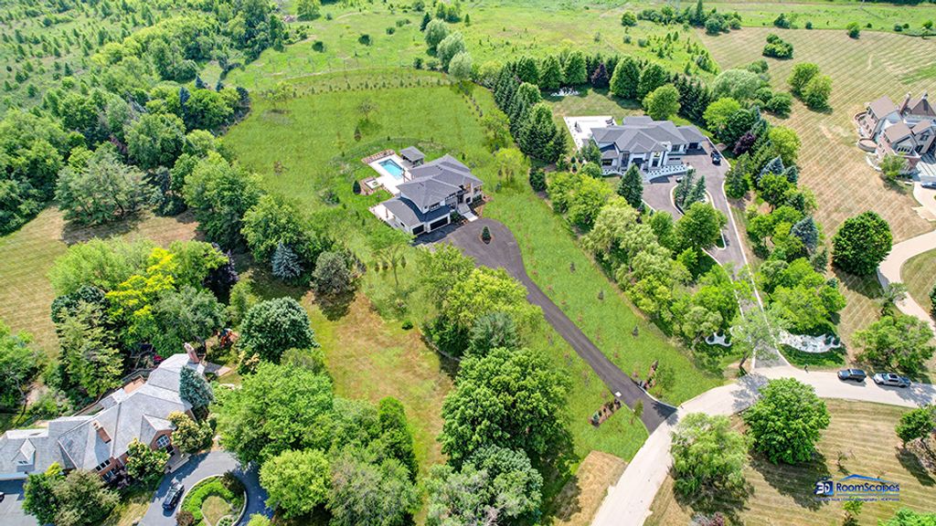 Luxurious Modern Estate in Barrington Hills. Experience contemporary elegance in this custom-built 6,000 sq ft home set on over 5 acres of beautifully landscaped grounds. A striking 10'x8' glass entry welcomes you into an open-concept layout with 10-foot ceilings and European windows throughout. The gourmet chef's kitchen features high-end appliances, custom cabinetry, custom Miele coffee nook and a 12-seat island. Engineered hardwood floors, a dramatic 3-story accent wall, and smart home systems-including Sonos, Lutron Caseta, LED lighting, and a video intercom with gated 245-ft driveway-add style and convenience. Enjoy resort-style living with a saltwater pool, hot tub, automatic cover, and a fully outfitted pool house. The 5-car heated garage with 14-ft ceilings offers ample space for vehicles and storage, includes 2 EV charging stations. The sunlit basement includes a wet bar, exterior access, large bedroom, full bath with steamer, and a workout room. A new 24 x 50 metal outbuilding is ideal for storing vehicles or other motorized toys, creating a large workshop space or for recreational use. ATV trails and parks nearby add adventure to this luxurious lifestyle. Schedule a private tour to experience what this magnificent home has to offer.
