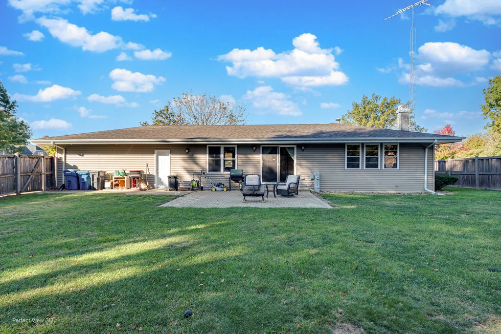 Don't miss this opportunity to own this spacious 3 bedroom, 2 1/2 bath ranch on a corner lot. This home has had extensive rehab within the last 5 years and you are sure to be impressed. Upon entering the foyer to the right is the kitchen, dining and living rooms. All with vaulted ceilings and can lighting. The newer cherry kitchen has a center island and seating featuring granite countertops and all stainless steel appliances. Adding convenience is a laundry/half bath adjacent. The dining/breakfast area has a sliding door opening to the fenced back yard and paver patio. What a great spot for entertaining! The living room has hardwood floors and floor to ceiling stone fireplace with a unique decorators touch of a tree adding visual interest. The primary bedroom again features hardwood flooring and a fantastically updated bath with walk-in tile shower, double bowl granite sink and large walk-in closet. The two adjacent bedrooms have ample closet space and are serviced by a hall bath with tiled tub/shower and granite top vanity. Needing more space? A full basement is just waiting for your design expertise. There is presently a workshop area. Completing the home is a two car attached heated garage with ample cabinetry for your storage needs. Don't delay in setting your appointment to see this exceptional offering at a fantastic price.