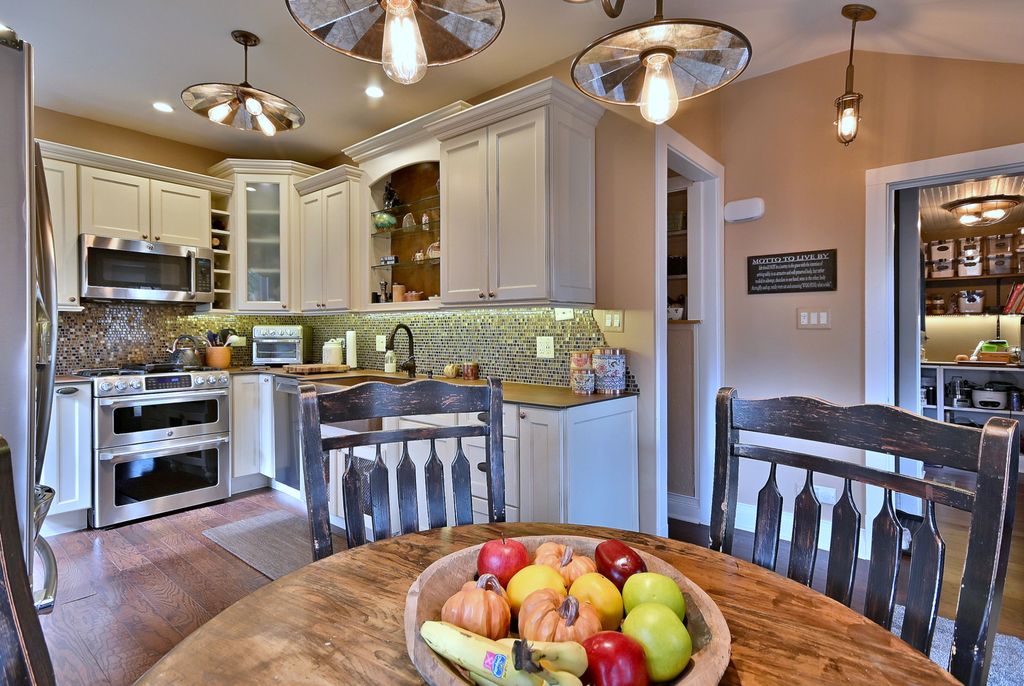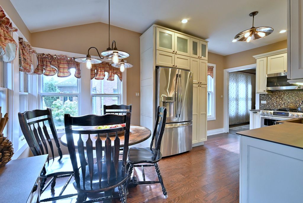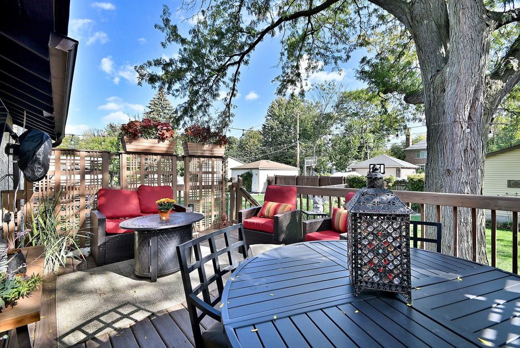 Charming bungalow in a prime Park Ridge location, set on an impressive 50x173 lot! This home perfectly blends classic charm with modern updates. A distinctive covered side front porch welcomes you into the main level, featuring an entrance foyer that splits a sun-filled living room with a cozy wood burning fireplace and a separate formal dining room. The first floor also includes a full bath, two bedrooms, and an updated eat-in kitchen showcasing beautiful cabinetry, a farmhouse sink, and a walk-in pantry. Upstairs, you'll find two generously sized bedrooms, a central sitting area, a full bath, and additional hallway storage. The finished basement offers even more living space with a recreation room, office, laundry area, two storage rooms, and a full bathroom. Enjoy outdoor living on the large deck overlooking a tree-shaded backyard. The property includes alley access to a two-car garage plus a side parking pad with 2 parking spaces for extra convenience. Major updates include roof 2010 & HVAC 2019.Fantastic location near Uptown Park Ridge, the South Park business district, Centennial Aquatic & Fitness Centers, and neighborhood schools - truly the perfect combination of timeless character and thoughtful updates.