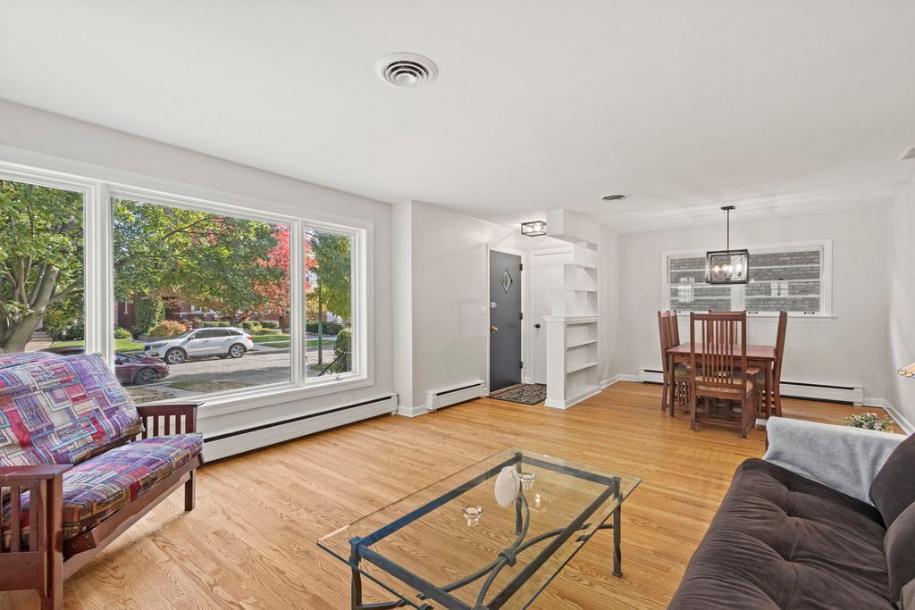 Solid brick ranch in fantastic Forest Glen neighborhood! Large and sunny living room/dining room combination overlooking front yard, kitchen with lots of cabinets (some original and some newer), eating area overlooking backyard. Primary bedroom is very spacious with plenty of room for a king size bed. Cozy den with wood paneling and sliders leading to deck and brick patio. On the first floor there is a full bath and powder room and in the basement is another powder room with a separate shower. The basement features a large wood paneled recreation room, gas fireplace, wet bar, laundry and good storage. There are newly refinished hardwood floors, fresh paint through out, new light fixtures, and new carpet in basement. The detached garage is oversized and all brick construction. This is an estate sale and is sold as is. Dishwasher and trash compactor as is. New roof 2012, boiler 2018, water heater 2021.Lot size is 40 x 124. Annual electric cost is $1,145.34 and annual gas cost is $2,016.55.
