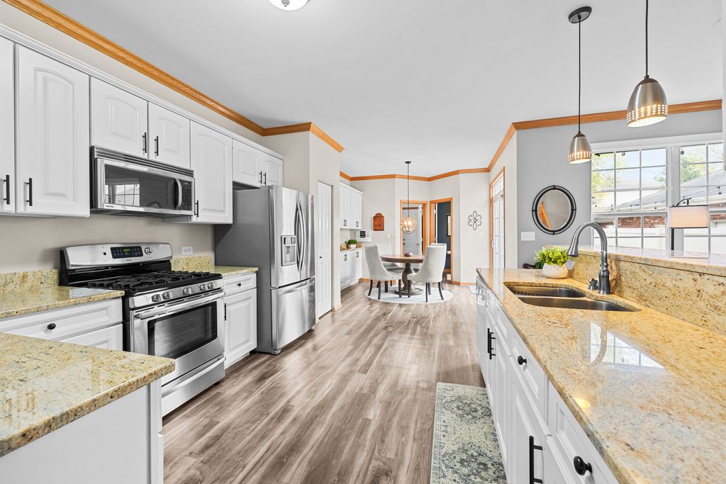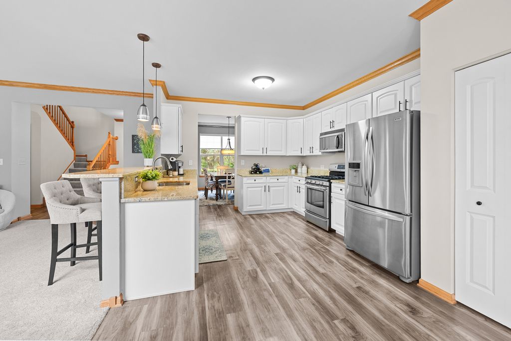 Welcome to 245 Garden Drive in Elgin! This adorable and light-filled townhome offers 2 spacious bedrooms-each with its own private full bathroom-plus an additional bedroom and full bath in the partially finished basement, perfect for guests or a home office. The main level features a stylish open-concept layout with luxury vinyl plank flooring throughout. The white kitchen is beautifully updated with granite countertops and flows seamlessly into the living area, making it ideal for both relaxing and entertaining. Step through the patio doors to your private outdoor space featuring maintenance-free decking and a serene, garden-like setting behind the home. Practical updates add peace of mind, including a brand new washer and dryer, 2025 Carrier furnace and air conditioner, and a 2018 water heater. Move-in ready, low-maintenance, and full of natural light-this townhome is the perfect blend of comfort and convenience!