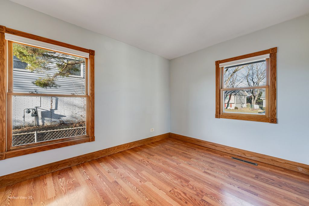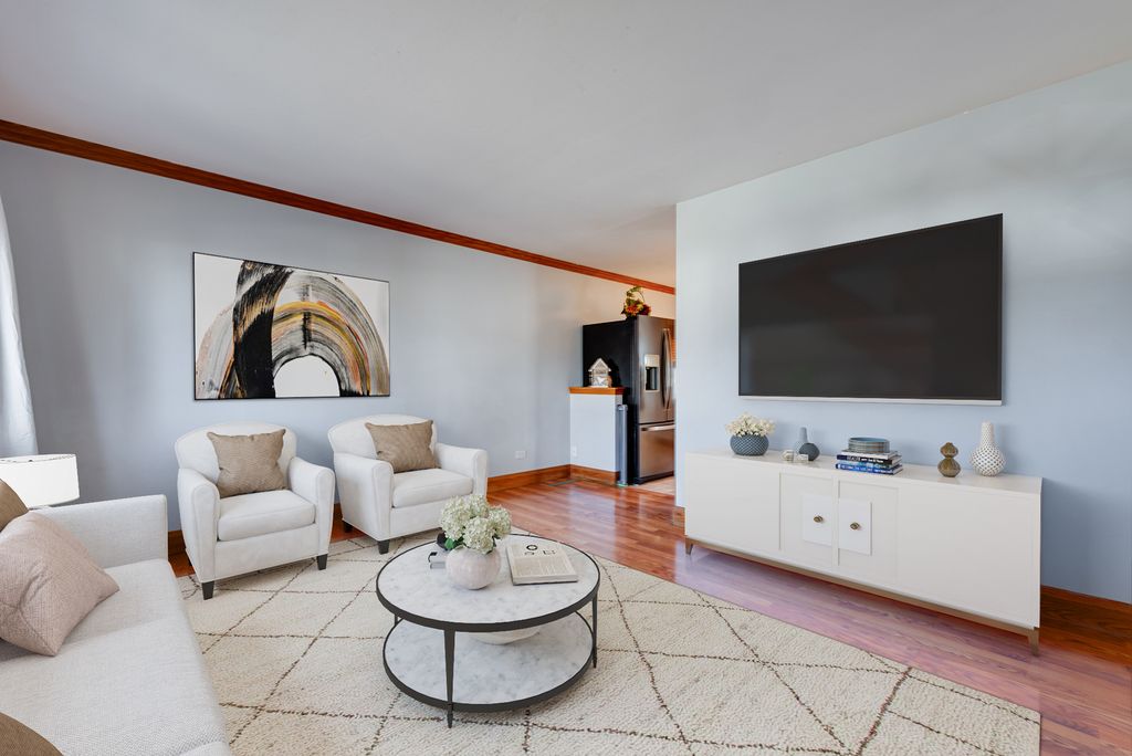 Enjoy the comfort and convenience of this charming ranch home featuring 3 bedrooms, FULL UNFINISHED BASEMENT, 2.5-CAR GARAGE, and a private DECK WITH PERGOLA. Step into the welcoming living area, complete with wood flooring and a large picture window filling the space with natural light. The kitchen showcases premium 42" Amber Hickory shaker-style cabinets with under-cabinet lighting, ceramic tile flooring, newer appliances-including a 35-cubic-foot refrigerator (2024), gas stove (2022),microwave (2022) and dishwasher (2021). A double stainless-steel sink with garbage disposal adds both style and functionality. Each of the three bedrooms offers generous space and features some closet organizers for easy storage. The main bathroom highlights a ceramic surround tub with shower and is conveniently located off both the kitchen and hallway for easy access from all bedrooms. You'll appreciate the fine details throughout-6" baseboards and rosette ornamental moldings around every window adding timeless charm. Step out onto your private deck and enjoy spectacular views of the large FENCED YARD overlooking Glenbrook Park and Lake as a peaceful backdrop for your morning coffee or evening relaxation. The separate 2.5-car garage is wired with a 60-amp/240 outlet, provides ample storage, and backyard includes a concrete pad ideal for a future shed! The full unfinished basement is PLUMBED FOR A FUTURE FULL BATH and ready for your personal touch. Over $30,000 in mechanical/plumbing upgrades include all-new PVC piping, overhead sewage, an ejector pump, a 96% high-efficiency Napoleon Furnace with 18 seer Bosch Heat pump/AC (2025), whole home advanced electrode steam humidifier, and a 65 gallon high efficiency Heat Pump Hot Water Heater (2023). This home combines comfort, quality, and scenic surroundings-ready for you to move in and make it your own! Close to shopping, Glenbrook Park, forest preserves, convenient to highways, and schools. QUICK CLOSE POSSIBLE.