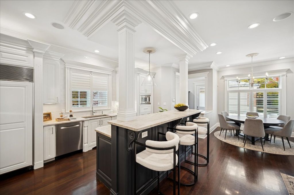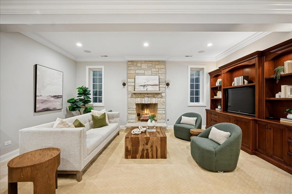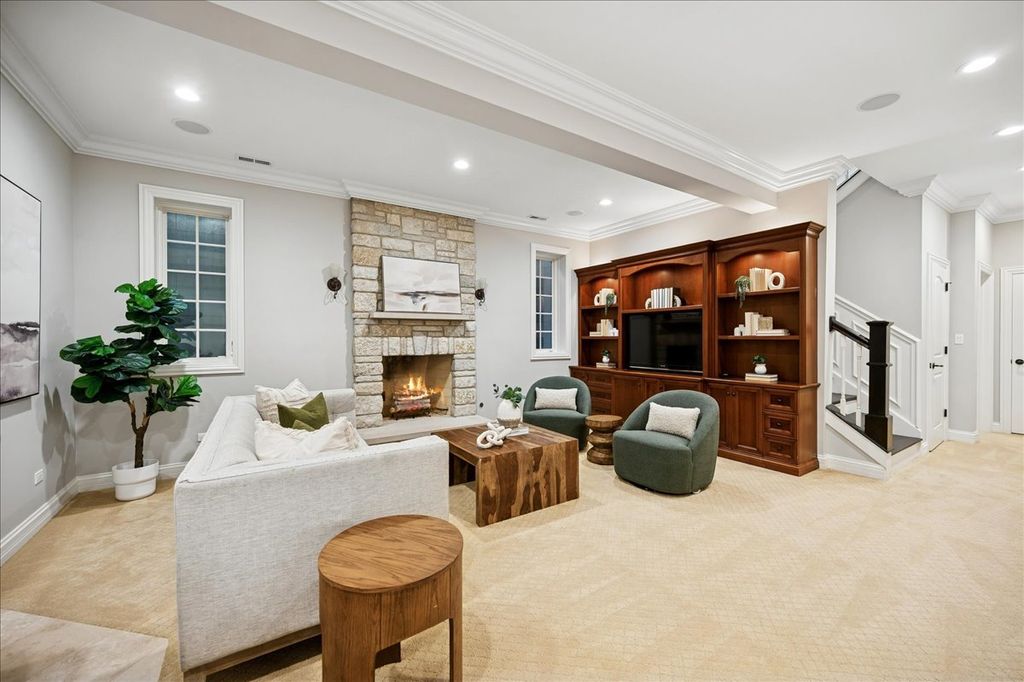 A rare opportunity in the heart of Winnetka, a beautiful newer-construction brick and stone home offering timeless design, modern comfort, and impeccable quality on every level. Built in 2005 and freshly updated for today's lifestyle, this residence combines elegant craftsmanship with the convenience of move-in readiness. Set on a beautifully landscaped and fenced lot just moments from parks, schools, the Metra, and Winnetka's vibrant town center! Graceful arched entry, architectural roofline with a new roof (2025), and warm curb appeal. Bright, open floor plan enhanced by high ceilings, custom millwork, and expansive windows that fill each room with natural light. A refined living room (could also work as a home office), a formal dining room with bay window and butler's pantry, and a stunning gourmet kitchen with large center island, professional-grade appliances, and adjacent breakfast area. The kitchen opens seamlessly to a spacious family room with fireplace and French doors leading to the private brick paver patio and yard perfect for entertaining and everyday living. A nice powder room and practical mudroom with built-ins complete the space. Upstairs, the serene primary suite features a fireplace, walk-in closet, and spa bath with carrara marble double vanity, jetted tub, steam shower, and private water closet. Three additional bedrooms offer generous space and fitted closets, including one with an en-suite bath and two sharing a hall bath. The full, finished lower level provides an additional layer of luxury and flexibility with a large recreation room, stone fireplace, full bar, custom wine room, paneled office, 5th BR/exercise bedroom, and full bath. Modern systems include dual-zoned HVAC, 200+ amp electrical service, a security and sprinkler system, central vacuum, humidifier, and backup sump pump. The home also features a private gated driveway, two-car garage, and beautifully landscaped yard.