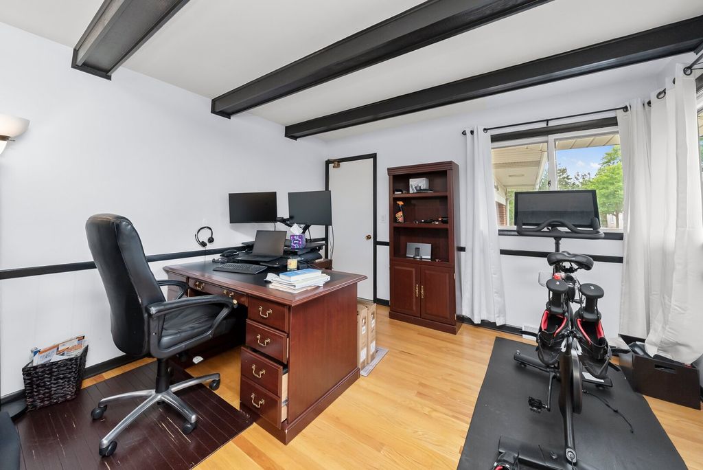Great opportunity to own a Macdougal Ranch. Nestled on an oversized 70 x 185 lot in desirable East Elmhurst, this charming 3-bedroom, 2-bath home offers over 3,200 square feet of living space across two levels. The main floor features hardwood floors throughout, a spacious master suite with en suite bath, and two additional bedrooms with generous closet space. The kitchen opens to a private patio and deep backyard, perfect for outdoor entertaining. The lower level spans over 1,600 square feet and includes three large rooms currently used as a family room, storage/work area, and flex space that could easily become a fourth bedroom or expanded living area. Located just steps from Jefferson Elementary, the Prairie Path, HB Jones, and more, this home offers the perfect blend of space, location, and opportunity to make it your own. Newer AC, Roof 2020, Double oven 2023, Furnace 2021, E.V. charging station 2023.