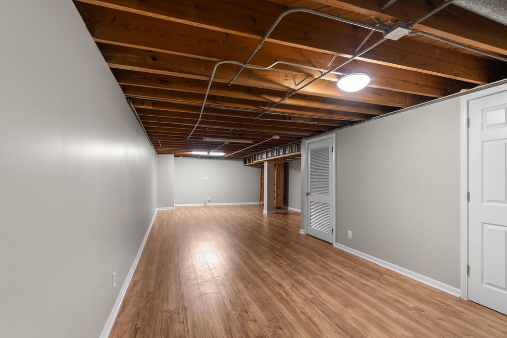 Move in ready Ranch with 3 bedrooms and a bonus room in basement! This home features newly finished hardwood floors and fresh neutral paint. The partially finished basement includes a bonus room that can be used as an office or playroom. The large windows throughout the home let in tons of natural light! The bedrooms are nicely sized and have generous closets and beautiful hardwood floors. The spacious bathroom has a double sink vanity and lots of cabinet space. Kitchen features stainless steel appliances, wood cabinets and room for a table! Laundry room has newer washer and dryer! Large utility room in basement has room for additional storage. Enjoy the park like yard which is fully fenced with a patio. Conveniently located near shopping and expressways. This well maintained home is being sold As-Is.