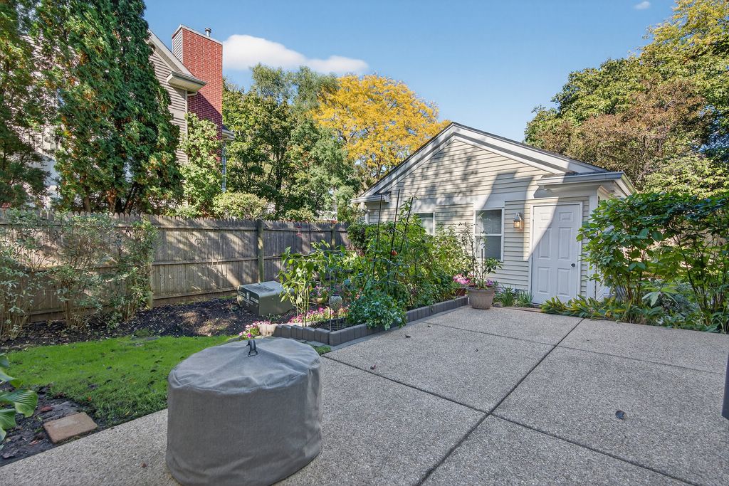 OH cancelled for 10/25. Beautiful end-unit townhouse that lives like a single-family home in desirable Hibbard Place! With windows on three sides this spacious 3-bedroom, 2 full and 2 half bath residence offers the perfect blend of comfort, style, and convenience. The main level features hardwood floors throughout and a large, sun-filled living room with a cozy fireplace and expansive windows. The separate dining room opens directly to the backyard, flowing into a well-appointed kitchen with stainless steel appliances including a gas cooktop, range hood, built-in oven & microwave. A breakfast area with built-in bar provides extra storage and a second access point to the backyard-ideal for entertaining. A convenient half bath completes the first floor. Upstairs the hardwood floors continue throughout all three bedrooms. The spacious primary suite has windows on two sides (with new window treatments) that allow in tons of natural light, walk-in closet with Crate & Barrel closet racks and private bath featuring a dual vanity, whirlpool soaking tub and separate shower. The second bedroom has a built in alcove bed with trundle and new crown molding. The third bedroom has a large walk in closet that could also be used as a small home office and shares an updated hall bath with soaking tub with the second bedroom. The finished basement offers even more living space with a large recreation room equipped with Bose surround sound installed by Abt and wet bar, second half bath, laundry room with sink (additional laundry hook up on second floor), and a large craft or workroom complete with built-in cabinets, counter space, and a second refrigerator. Home is equipped with intercom system and radio (perfect for parties!). Outside enjoy the beautifully landscaped, partially fenced backyard with new cedar fence (2025) bursting with flowers, a small grassy area and large patio with access to the detached 2.5 car garage and extra long driveway with plenty of guest parking. Recent updates include fresh paint, exterior wood repairs & the roof was replaced in 2017. Prime Wilmette location close to I-94, Old Orchard, parks, shopping, and dining. Zoned to highly rated District 37 schools and New Trier High School.