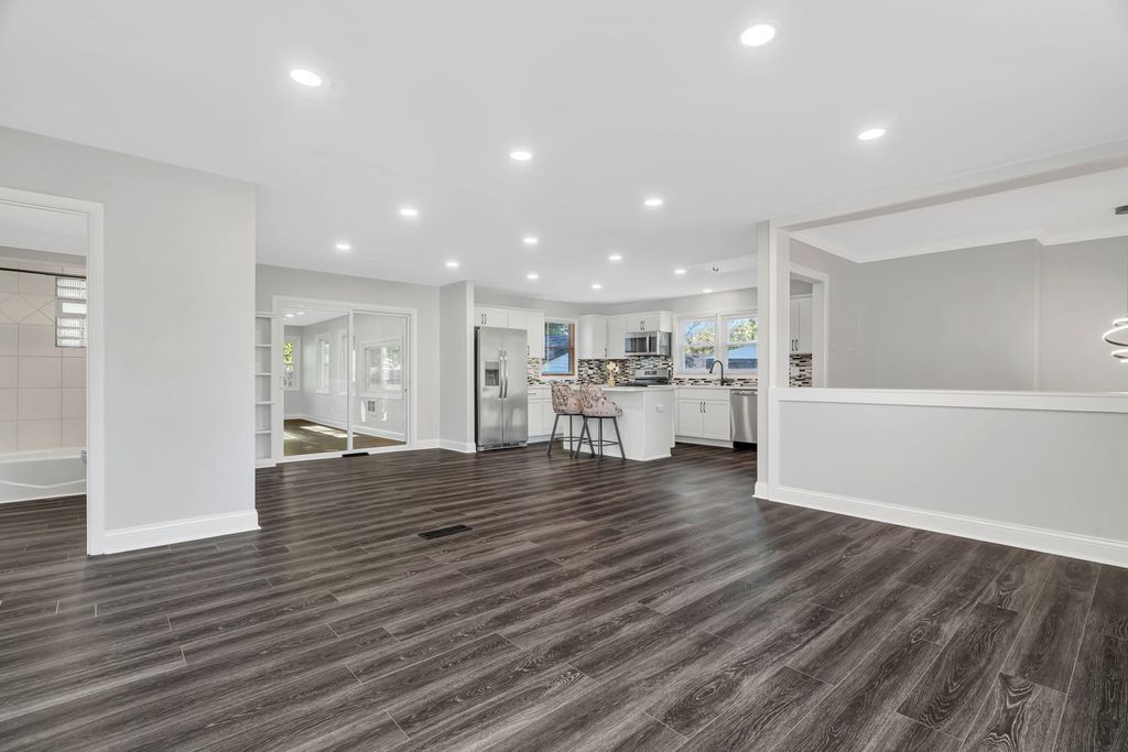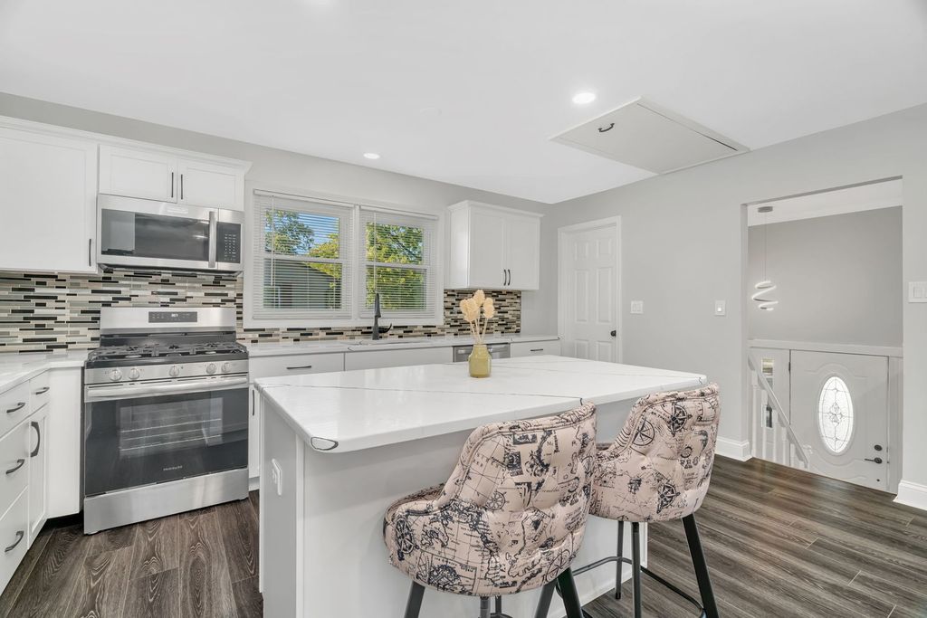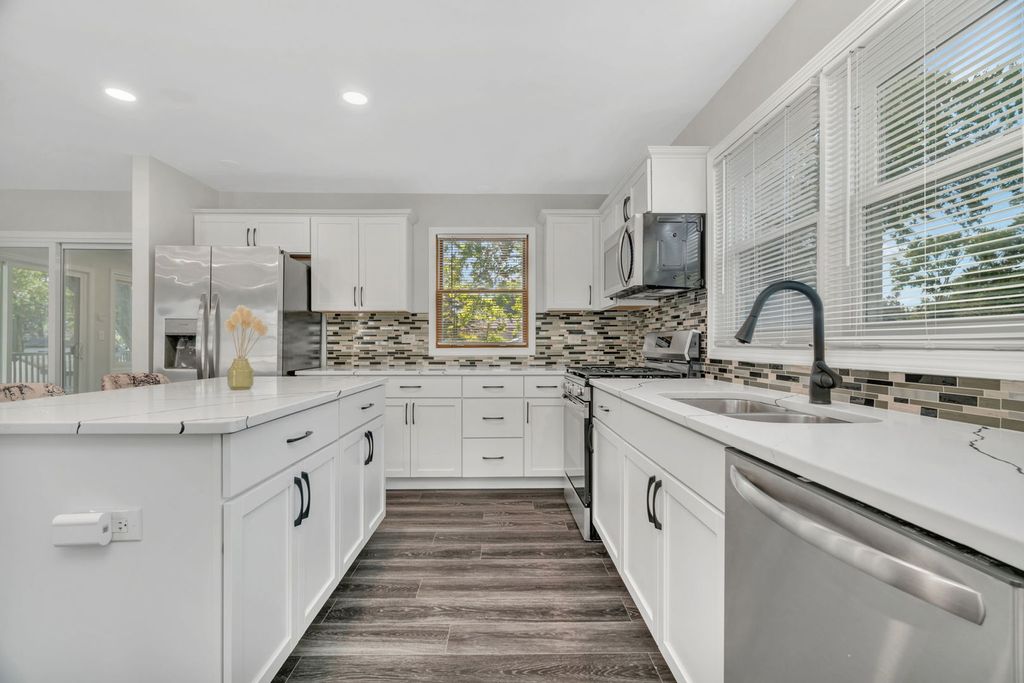Welcome Home! This updated 3 bedroom, 2 bathroom Orland Park home features an open-concept main floor with a kitchen that includes quartz countertops, a custom backsplash, white shaker cabinets, and stainless steel appliances. The dining and living areas flow seamlessly for easy living. The master bedroom has dual closets, an en-suite bathroom, and deck access for a private retreat. Enjoy the bright sunroom year-round. The lower level offers a family room, two bedrooms, a full bathroom, and laundry. Outside, the oversized deck is perfect for relaxing or entertaining. A 2.5-car garage provides plenty of storage. Recent updates include exterior paint (2025), interior paint and lighting, new sunroom windows, roof (2024), 200AMP service 2020, furnace (2019), and PVC water line (2025). Located in the heart of Orland Park, walking distance to Orland Square Mall, restaurants, parks, and more!