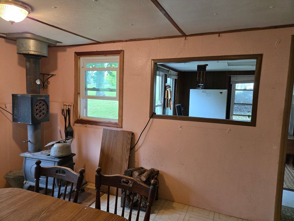 Beautiful 40 acres, two houses, 4.5 car garage, 60 x 40 pole barn, pond and partially wooded. So much to offer! Main house four bedroom, two bath, full basement eat-in kitchen, living room with fireplace. First floor bedroom and sitting room. Second home, spacious living room, eat-in kitchen with all appliances, potbelly stove, bay window, sitting room, four seasons porch, three bedrooms and green house. Deck off the back. New hot water heater, newer, AC and furnace. Beautiful fruit trees and plenty of room for hunting. Walking path to the pond. So peaceful! Photos are of the small back house. Renters are in the Larger front home.