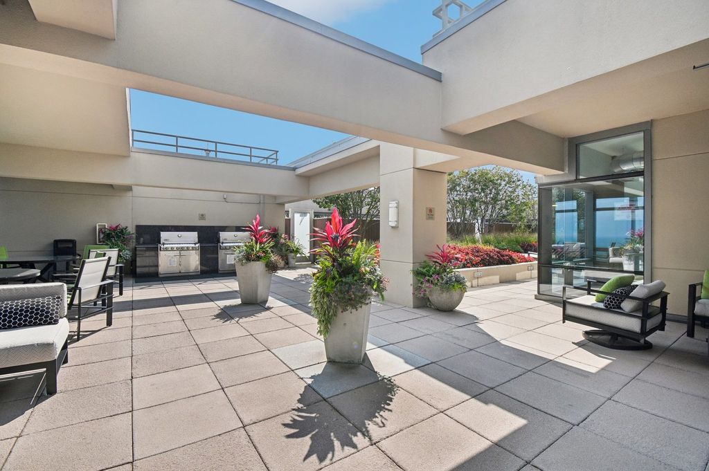 The Park Monroe is a luxury high-rise located in the heart of the Loop, offering stunning views and high-end amenities. This east-facing, high floor, 2-bedroom home features a spacious, open-concept living area with floor-to-ceiling windows and large terrace that provides unobstructed, panoramic views of the city, Lake Michigan, and Millennium Park. The '21 tier is rarely available, has one of the largest floor plans and is just one of the few units offering private outdoor space. The kitchen includes modern Bosch stainless steel appliances, granite backsplash and countertops, sleek cabinetry, and a large island. Both bedrooms have generous closet space, with the primary bedroom featuring an updated en-suite bathroom with marble tiling, double sinks, a soaking tub, and a separate glass-enclosed shower. The spacious second bedroom is closed off with glass, ideal for a guest room, home office, or roommate. The guest bath has been updated with marble tiling and a modern vanity. Other features include gorgeous Brazilian cherry hardwood floors throughout, full size walk in laundry room, custom lighting, and 10' high ceilings. Deeded XL garage parking space available for an additional $40,000. The building itself offers top-notch amenities, such as a rooftop deck, fitness center, indoor pool, 24-hour door staff, and resident lounge. Being centrally located, the Park Monroe also offers easy access to dining, shopping, and entertainment, along with proximity to public transportation, making it a prime spot for urban living in Chicago.