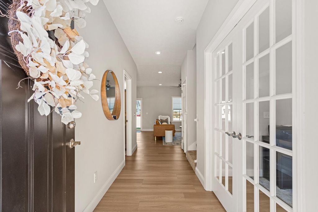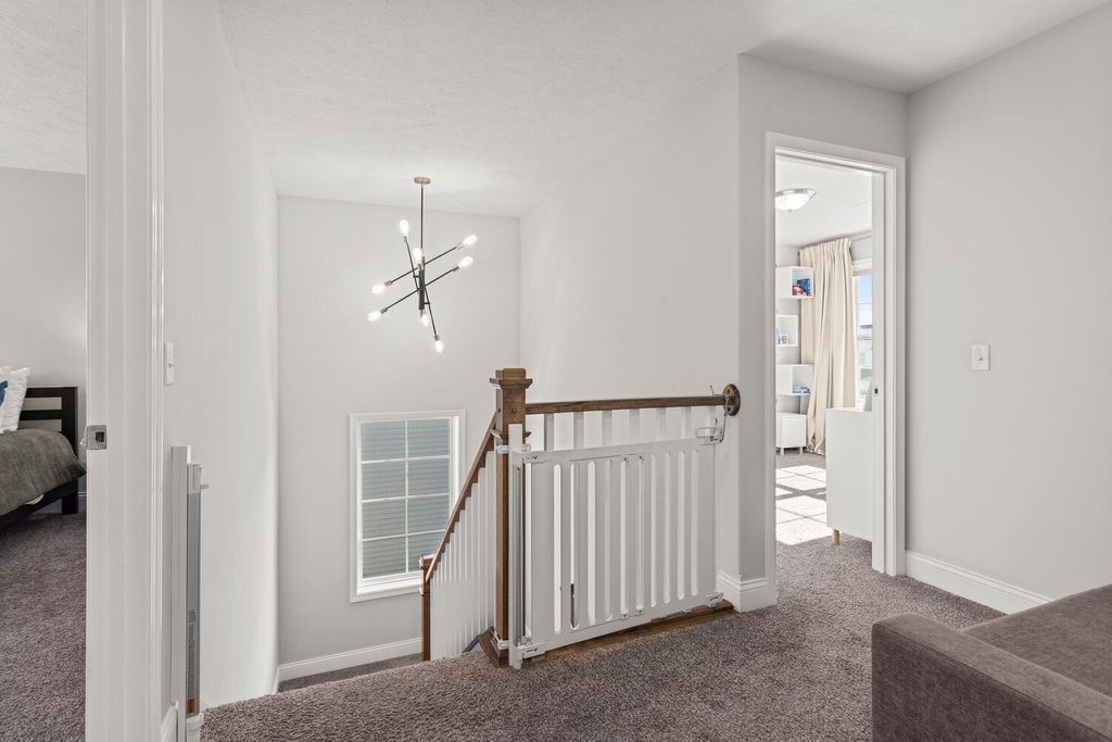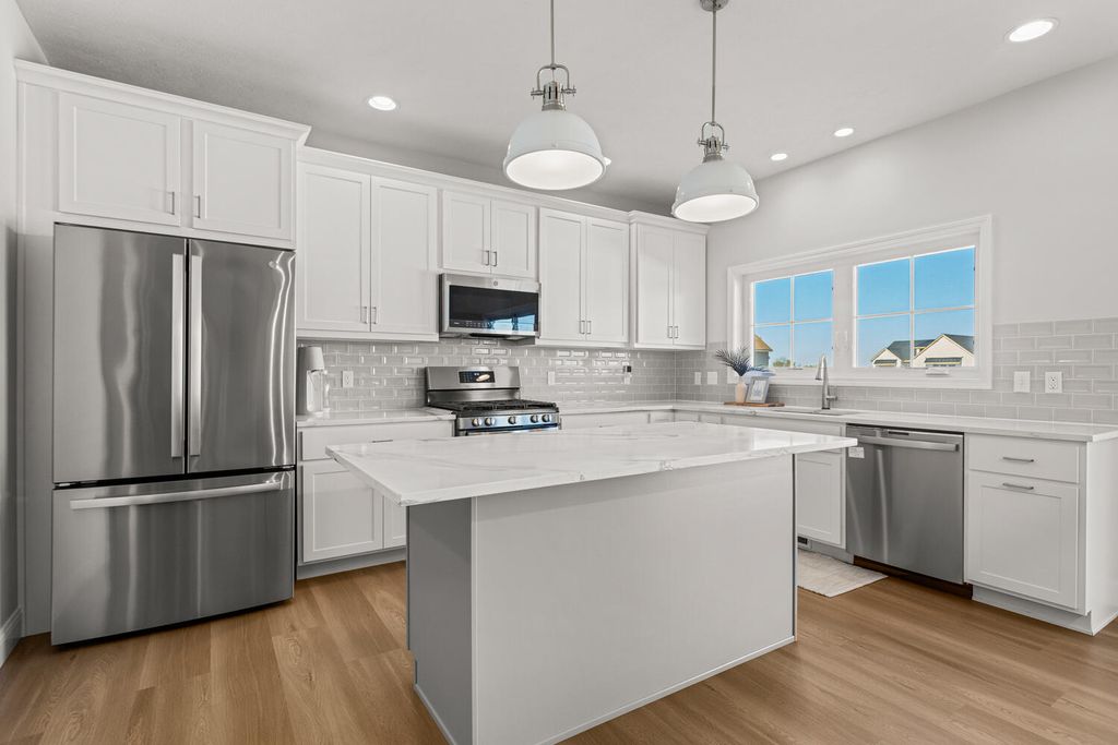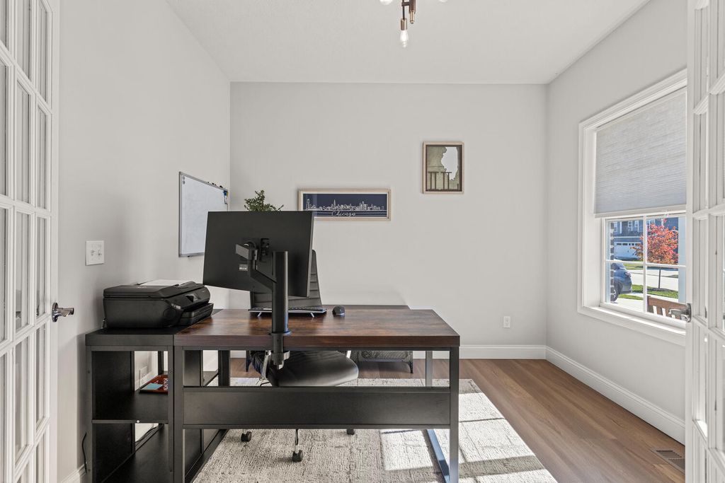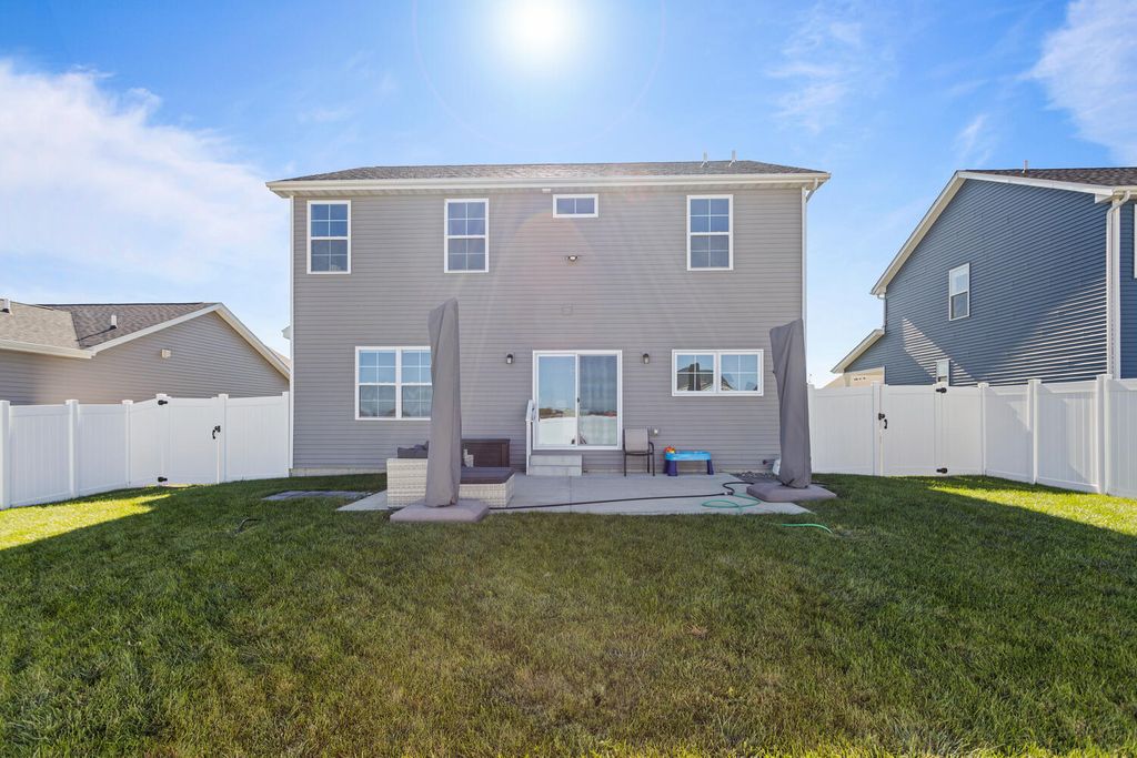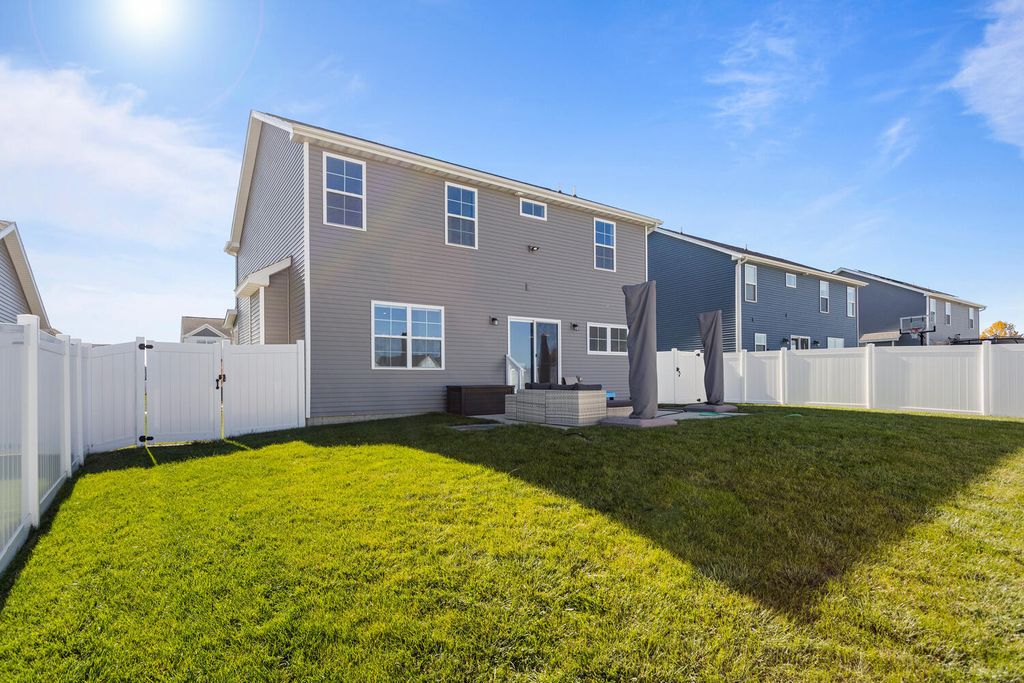 Welcome to this stunning 2021 built home that still feels brand new! Immaculate condition! Step inside to find a bright, open floor plan filled with natural light. The spacious kitchen features sleek quartz countertops, stainless steel appliances, and two large windows above the sink overlooking the fenced backyard. Plus a walk in pantry! A cozy gas fireplace anchors the living area, creating the perfect space for relaxing or entertaining. Rounding out the first floor is a flex room that could be used as an office, playroom or second living room. Upstairs, you'll find a convenient laundry room complete with a sink and linen closet, along with generously sized bedrooms. The primary suite offers a beautiful retreat with a custom walk-in closet and a spa like bathroom feature dual sinks and double shower heads. The unfinished basement provides endless possibilities for future expansion, space for a family room, bedroom and bathroom. Outside, enjoy a fenced yard and an unbeatable location less than a block from the neighborhood park with tennis courts, basketball court, walking path and playground!