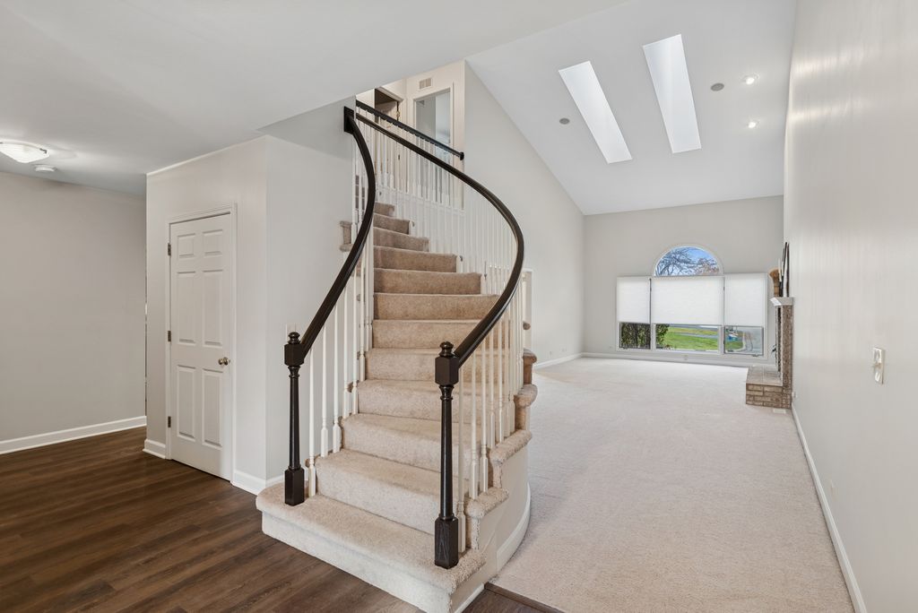 WOW!! Don't miss this stunning home that truly lives like a single-family house! Located in highly sought-after Riva Ridge III, this home will impress you the moment you walk and are greeted by the gorgeous, recently updated grand bridal staircase! Large living room with vaulted ceiling/skylights and brick fireplace. Well-equipped kitchen with plenty of counter/cabinet space, walk-in pantry, stainless steel appliances and spacious eating area. New floors in the foyer and kitchen! First floor has recently painted! Huge vaulted primary bedroom with large walk-in closet and large bathroom suite with separate shower and jacuzzi tub and dual vanities. 2 more generous sized bedrooms and a full bathroom complete the 2nd floor. First floor laundry/mud room and a basement that is ideal for storage! Private patio space and great cul-de-sac location. Great opportunity to live in this desirable, maintenance-free community that's ideally located in close proximity to countless stores and restaurants! Choose between Libertyville and Vernon Hills high schools! Additionally, homes in Riva Ridge III can be rented making this home an incredible investment opportunity!