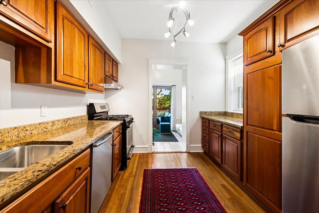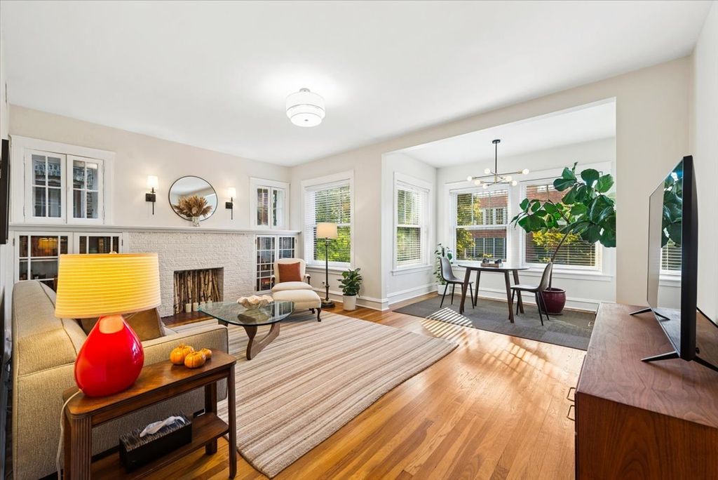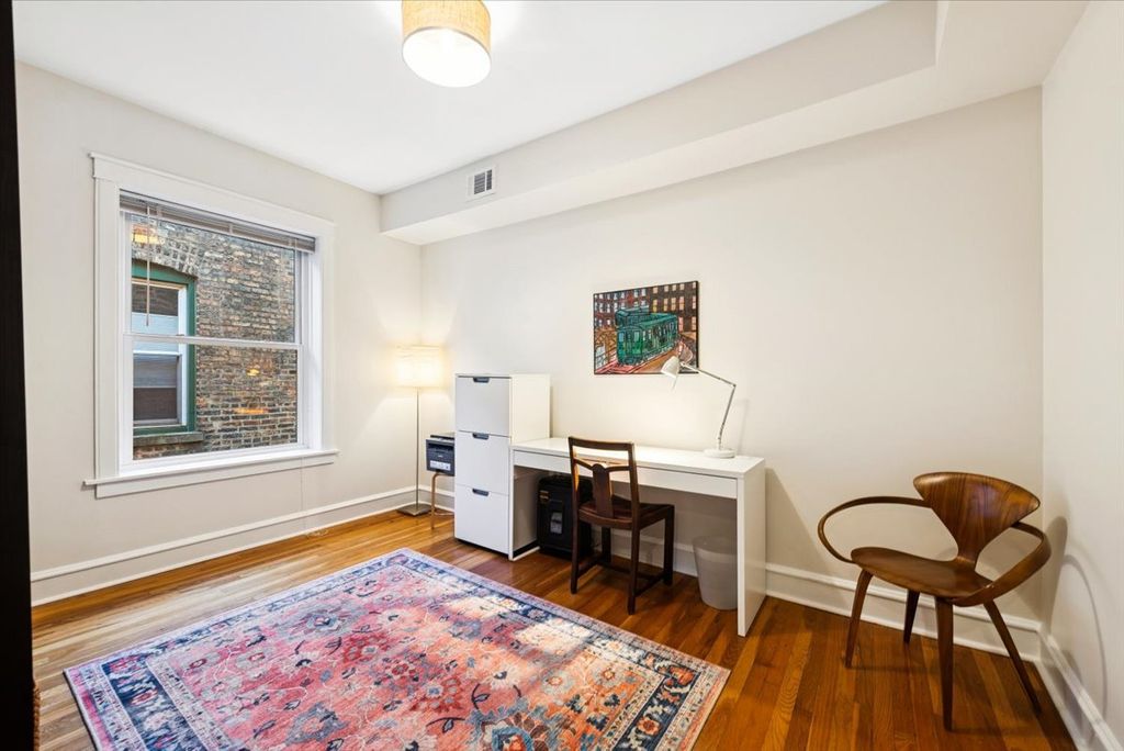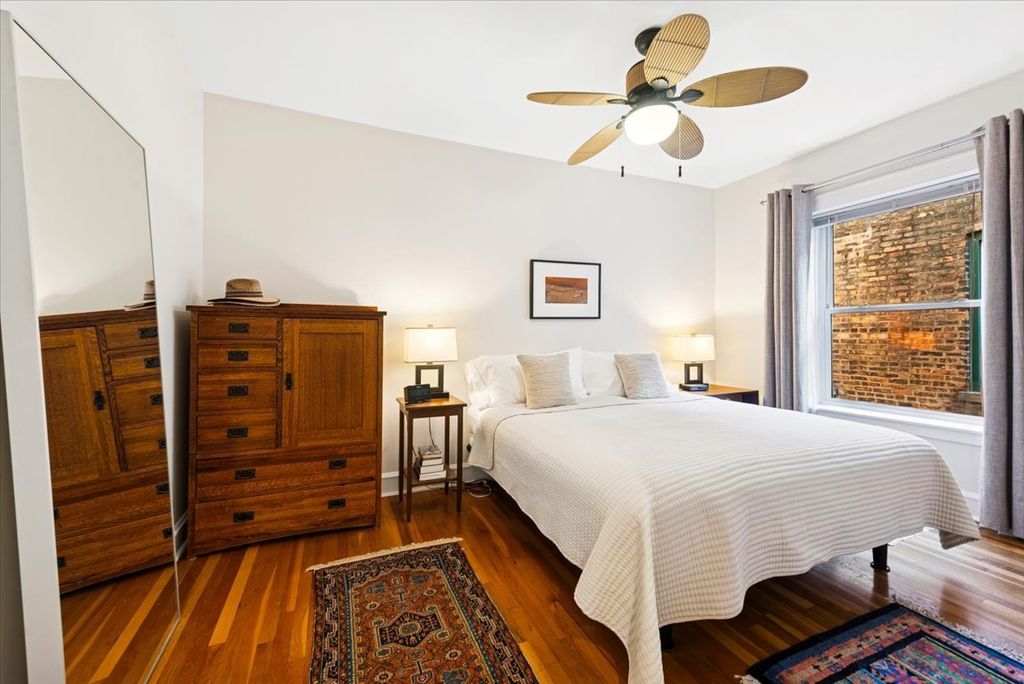 Penthouse goals-realized. Extra-wide and super bright 1700 sq ft top-floor home in an intimate 6-unit, center-entrance walk-up in historic Sheridan Park. Luxury, light, and character come together perfectly-plus your own private garage spot! The 19-ft-wide living room features a west-facing sunroom, ideal for morning coffee or a cozy reading nook. A well-positioned kitchen sits between the formal dining room and tree-top back deck, creating a natural flow for entertaining. This classic flat offers 3 spacious bedrooms, two comfortably fitting king beds. The third bedroom doubles as a home office, complete with ensuite bath and in-unit washer/dryer. Downstairs, enjoy your private garage and basement with 10x10 storage, workout area, woodshop, and additional storage. Walk to Andersonville, Wrigley Field, the CTA Red & Brown Lines, Metra, and the lakefront. Exceptionally well-run building with healthy reserves and consistent maintenance. Long-term, happy ownership shows-20 years and counting. Please see FAQ sheet under additional info tab for ages and upgrades.