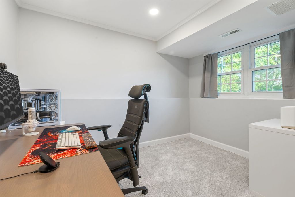 This beautifully renovated home is situated on a premium, fully fenced lot that backs to a natural open space. Perfect for the entertaining and everyday living, the open-concept main floor features elegant laminate flooring and plantation shutters, showcasing a spacious Great Room and a stunning kitchen complete with 42-inch espresso cabinets, granite countertops, stainless steel appliances, and a generously sized island with seating. Expansive views of the picturesque yard and open space and large deck are unobstructed by walls. The lower level hosts a roomy family area with new carpet (2025), wainscoting, plantation shutters and crown molding, alongside a bonus room currently utilized as an office and a lovely half bathroom, with the utility room conveniently located nearby. Upstairs, you'll find two spacious bedrooms, including a master suite with a walk-in closet and direct access to the main updated bathroom, with fresh carpeting installed in 2024. Located in the esteemed District 25, this home is also surrounded by numerous parks. 10 minutes to Winfield Metra Station.