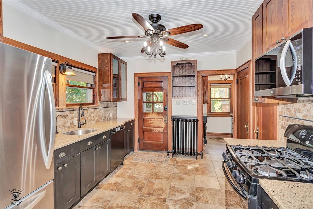 Charming 1920s Brick Bungalow in the Heart of Manhattan, IL with a total of about 3300 sq feet of usable space. Step into timeless elegance with this beautifully preserved 3-bedroom, 2-bath brick bungalow brimming with character and thoughtful updates. Built in the 1920s (with original builder paperwork to show), this home showcases much of its original charm-from the authentic doorknobs and crown moldings to the meticulously maintained woodwork that has never been painted. Every detail tells a story of craftsmanship and care. The main floor features 2 bedrooms, a newly renovatedv bathroom, a large living room and dining room, new hardwood flooring that perfectly complements the original trim, and a bright, welcoming kitchen that marries vintage character with modern convenience. The kitchen boasts a large butler's pantry and a separate food pantry, offering abundant storage and functionality. The Butler pantry has laundry hook-up available but this is not the only laundry location. Enjoy the comfort of central heating and air, newly added with a furnace and A/C system, while still retaining the boiler and classic radiators that lend warmth and charm. Other recent upgrades include new gutters with gutter guards, some fresh paint, a new water softener (2024), and main-floor laundry hookups. The walk-up basement offers endless possibilities-featuring its own exterior entrance, full bathroom, and laundry room - making it ideal for related living, a guest suite, or a potential rental opportunity. The walk-up attic includes a cozy bedroom and a large storage area flooded with natural light. Enjoy morning coffee or afternoon relaxation in the sun-drenched solarium, adorned with French doors and walls of glass that overlook the lush professional landscaping. The landscaped yard, a true neighborhood showpiece, has been recognized for its beauty and features a paver patio, firepit, and a 5-foot white picket fence with a gated arbor leading to your private oasis. Additional highlights include a 10x16 shed, a renovated garage with fairly new siding, alley access with extra parking, and convenient street parking in front. The roof is approximately 12 years old, offering peace of mind for years to come. This home is truly one-of-a-kind-a perfect blend of historic charm and modern comfort, lovingly maintained and ready for its next chapter.