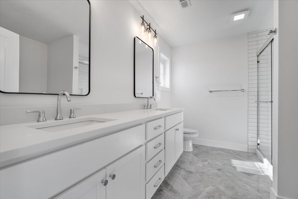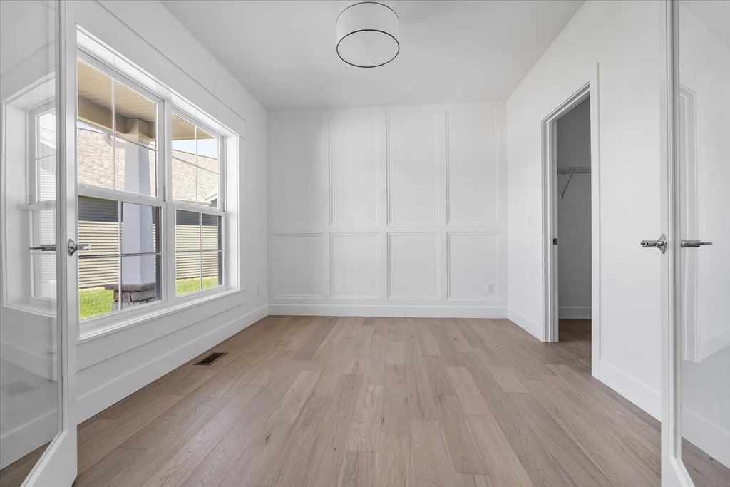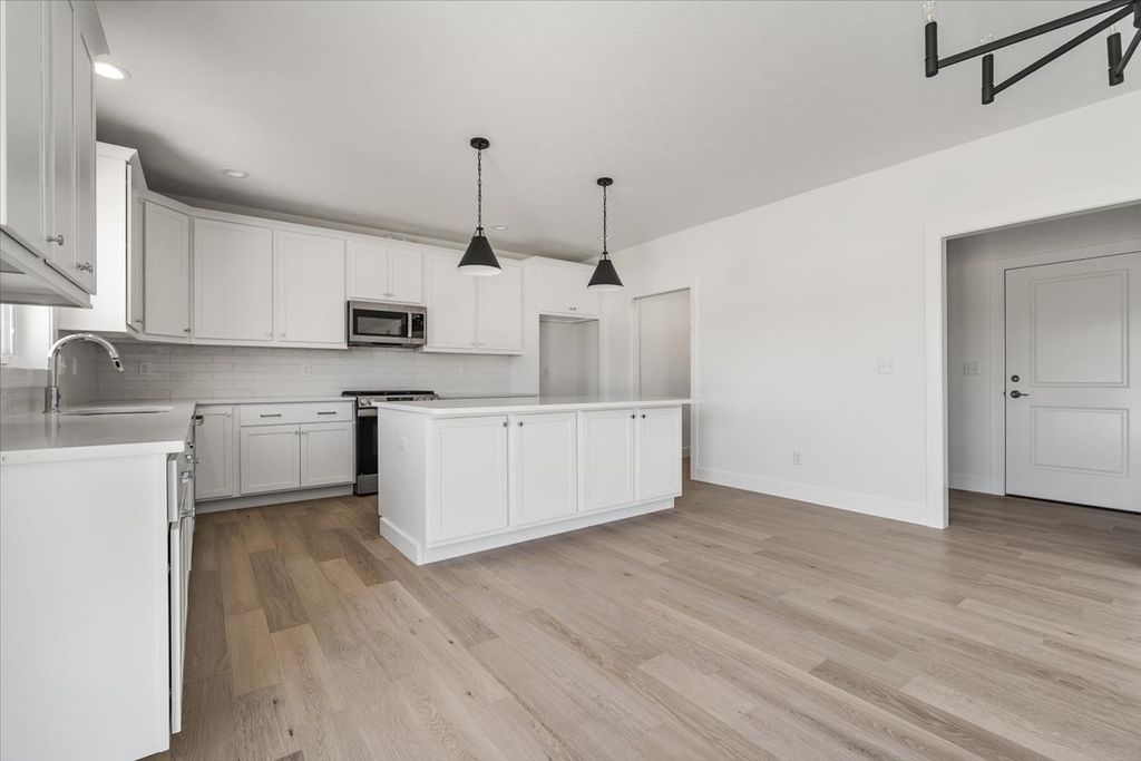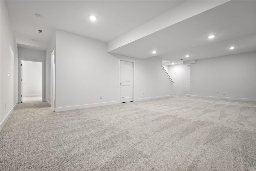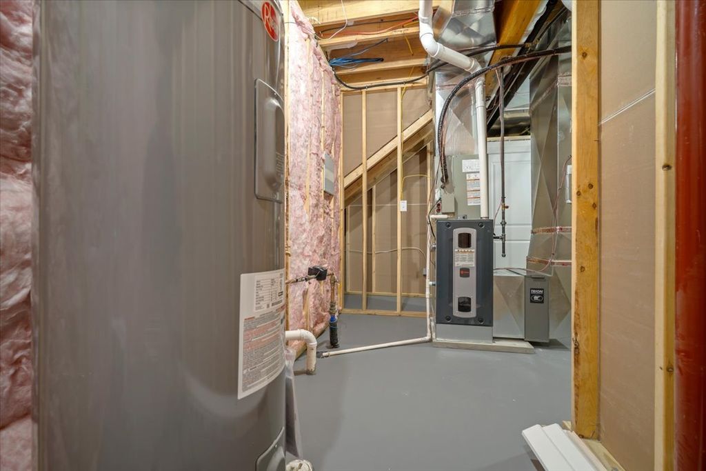 Welcome to 24 Stonehouse, situated in the latest phase of Harvest Pointe Subdivision on a premium lot, boasting a stunning 2-story residence with 5 bedrooms and 3 1/2 bathrooms, adorned with high-quality finishes and millwork throughout. Upon entering, the formal dining room and/or office are showcased. Beautiful wide plank engineered wood flooring is present throughout the main level. The kitchen is distinguished by white shaker cabinets with quartz countertops, black lighting, and chrome hardware, accompanied by a large center island with barstool seating, a tiled backsplash, walk-in pantry, and an open layout to the casual dining area and living room. A back hall drop zone leads to a 3-car garage, featuring a custom-built locker system. The upper level comprises a spacious laundry room, 3 bedrooms, and a generous primary suite. The primary suite boasts a dual sink vanity, shower, spa tub, and walk-in closet. The finished basement encompasses a recreational room, bedroom, full bathroom, and ample storage space. The property features full sod and standard landscaping package. Agent interest