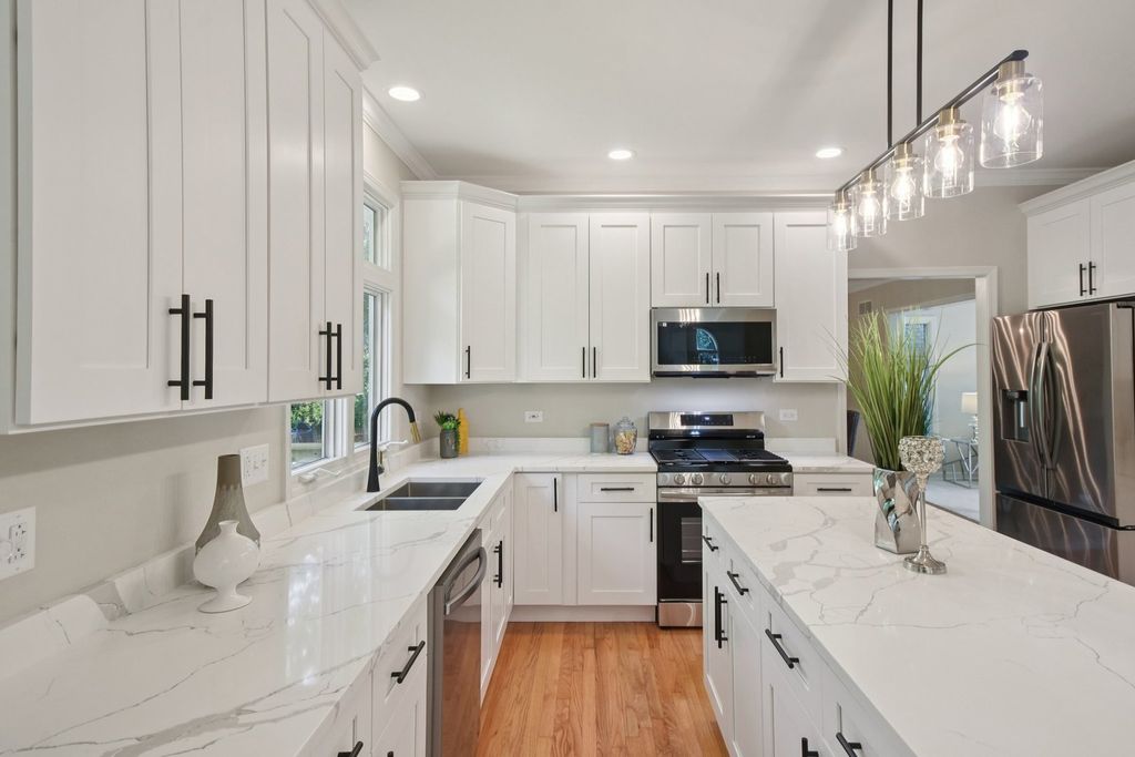 WELCOME TO THIS STUNNING ONE OF THE KIND PROPERTY THAT HAS EVERYTHING YOU ARE LOOKING FOR. DRAMATICALL TWO STORY FOYER GREETS YOU ON THE WAY IN. FLOWING FLOOR PLAN WITH EXQUISITE MILWORK, CROWN MOLDING AND ARCHITECTURALLY DETAILED CEILINGS THROUGHOUT. KITCHEN IS A CHEF'S DREAM WITH PLENTY OF CABINET SPACE, ISLAND, PANTRY, QUARTZ COUNTERTOPS, SS SAMSUNG APPLIANCES AND BAR AREA WITH WINE COOLER. DINE IN HAS ACCESS TO THE DECK AND WITH THE VIEW OF NATURE. TWO STAIRCASES MAKE ACCESS TO THE SECOND FLOOR VERY CONVENIENT. BIG SEPARATE DINING ROOM WITH TRAY CEILING IS PERFECT FOR FAMILY DINNERS. TWO STORY FAMILY ROOM WITH FIREPLACE IS PERFECT FOR RELAXING EVENINGS. HUGE MASTER BEDROOM RETREAT HAS TRAY CEILINGS, BIG SITTING ROOM, WALK-IN CLOSET AND SPA INSPIRED BATHROOM WITH DUAL VANITY, SHOWER, FREESTANDING SOAKING TUB AND SKYLIGHT. THREE OTHER BIG BEDROOMS OFFER PLENTY OF LIVING SPACE. SECOND BATHROOM WITH SKYLIGHT, DOUBLE SINK AND SOAKING TUB IS FULL OF LIGHT. PLENTY OF CLOSET SPACE FOR STORAGE. HOUSE IS FULL OF NATURAL LIGHT AND SKYLIGHTS. FOURTH BEDROOM COULD BE USED AS OFFICE. LAUNDRY WITH SINK IS CONVENIENTLY LOCATED BY THE GARAGE. BIG BACKYARD WITH DECK IS READY FOR YOUR ENTERTAINMENT AND BACKS UP TO THE FOREST, NO HOUSES BEHIND. HAS BEEN PAINTED FROM TOP TO BOTTOM. NEW CABINETS, QUARTZ, CARPET, FLOOR, SS APPLIANCES, LIGHT FIXTURES, FAUCETS, DRIVEWAY, SINKS, HARDWARE AND MORE. HARDWOOD FLOORS HAVE BEEN REFINISHED. HUGE ENGLISH BASEMENT WITH BATHROOM ROUGH IN IS WAITING FOR YOUR IDEAS. THREE CAR GARAGE. CLOSE TO EVERYTHING: SHOPPING, RESTAURANTS, AWARD WINNING NEUQUA VALLEY SCHOOL DISTRICT. MOVE IN READY