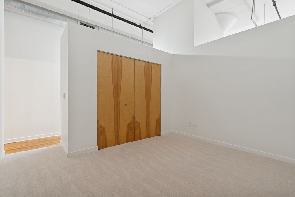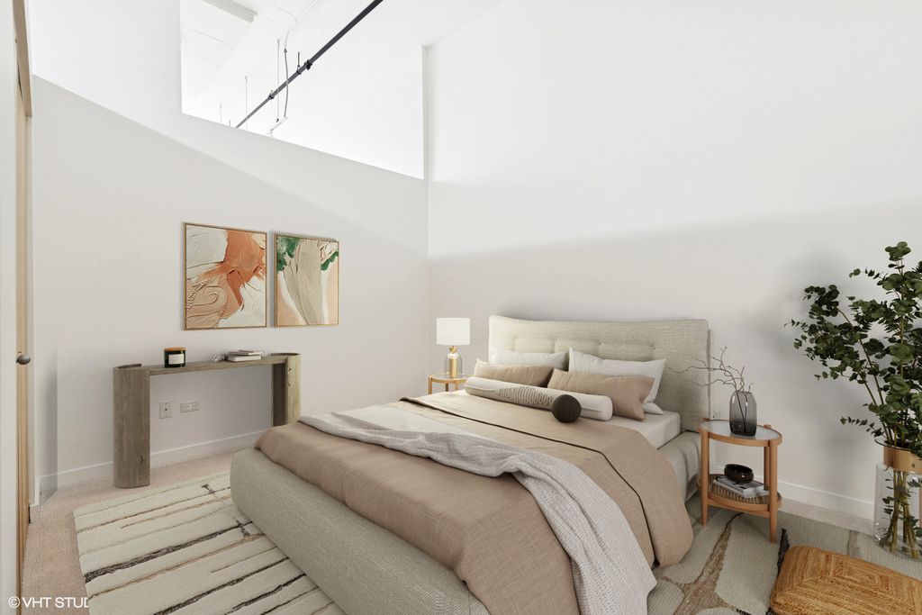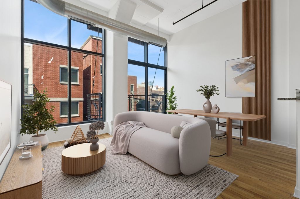 Live the ultimate West Loop lifestyle in this chic 2 bed, 1 bath loft with soaring 12ft ceilings and floor-to-ceiling windows that fill the space with natural light. Freshly painted interiors and new bedroom carpeting create a modern, industrial inspired retreat. The open concept living area features granite countertops, stainless steel appliances, and ample cabinetry. Step onto your private balcony for peaceful northern views, perfect for morning coffee or an evening unwind. The lofted primary suite offers generous closets and a bright bath with double sinks ready for your personal touch. A flexible bonus room is ideal for a home office. While parking is available only for rent within the building, you're moments from dining, boutiques, Whole Foods, UIC, Rush, the Blue Line, I-290/I-94, and Skinner School District!