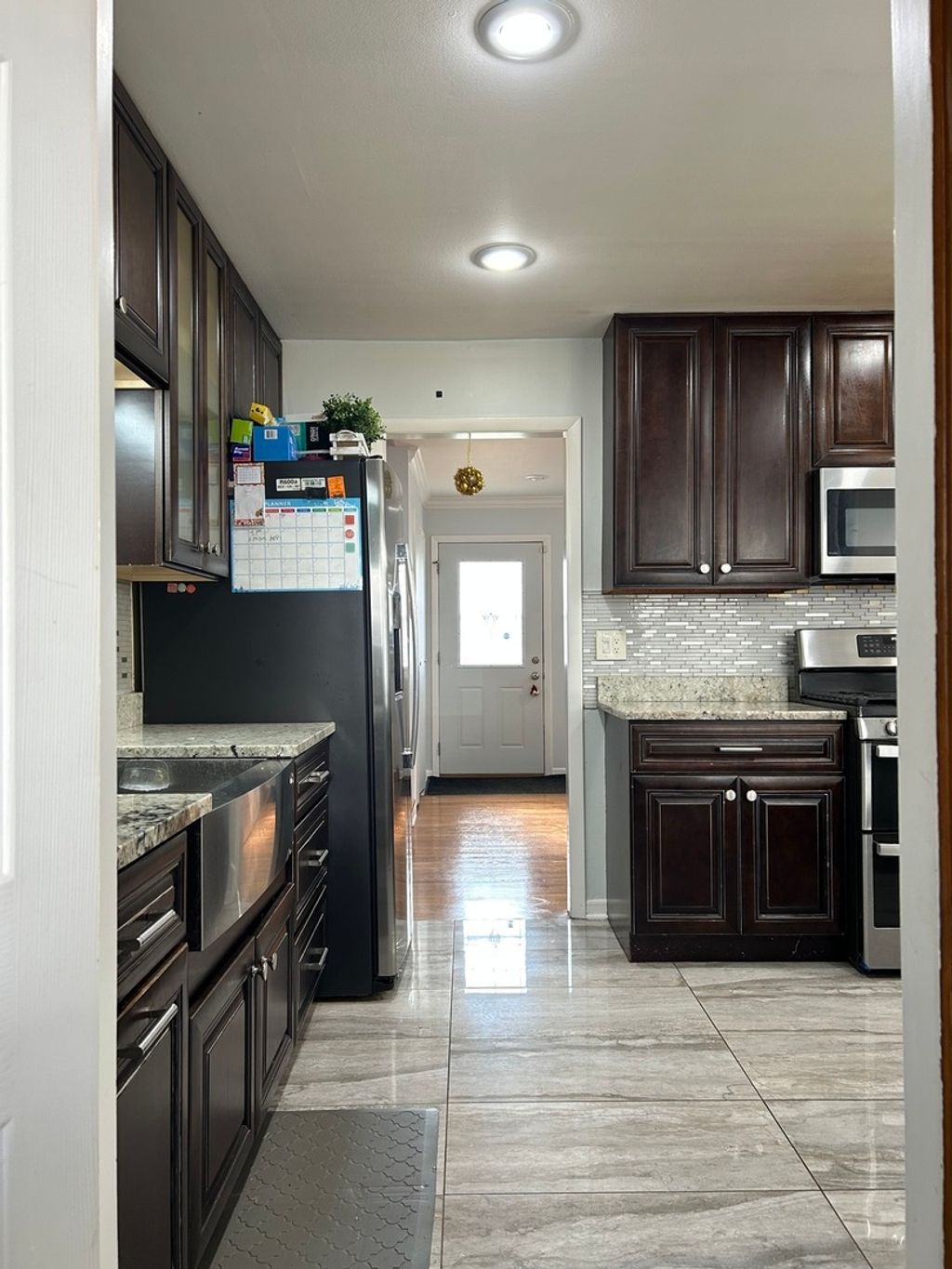 Here's a move-in ready condition house. Many updates have been made since it was purchased six years ago, including an upgraded kitchen with newer appliances, granite countertops, dark oak shelving and cabinetry, and porcelain flooring. A renovated 1.5 bathroom with a standing shower. Hardwood flooring in the dining and living rooms, as well as in the three bedrooms upstairs. The rear entry leads you to an additional 21x15 family room making this house great for family gatherings. Notably, this house has more rooms compared to an average split-level home. Additionally, adjacent to the backyard, you will find a detached 24X24 car garage, which is excellent for additional storage. Closely located to a shopping mall, stores and restaurants. There is considerable potential in this property. Come see for yourself!