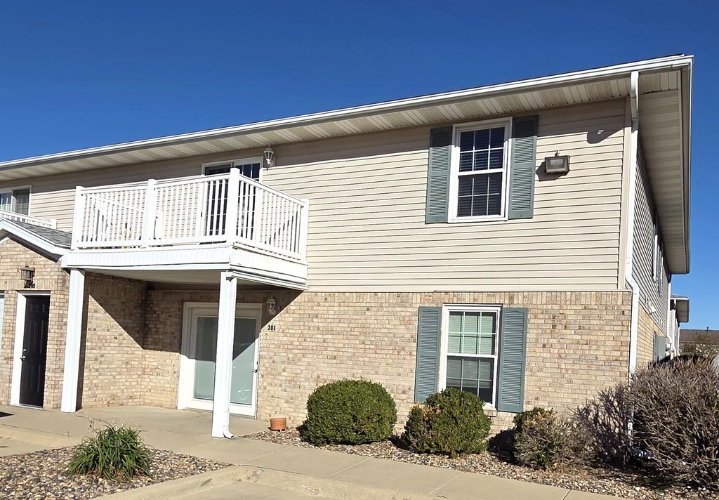 Move-In Ready 2 Bedroom, 2 Bath Condo! This beautiful second-level condo offers an open floor plan perfect for entertaining and everyday living. Enjoy two spacious bedrooms, including a primary suite with a beautifully updated private bath and a 6x4 walk-in closet. Both bathrooms have been tastefully redone! The refrigerator, stove, dishwasher, washer and dryer stay with the unit for your convenience. The kitchen appliances are Samsung. Step outside to your own private balcony or relax on the deck - perfect for morning coffee or evening sunsets! The roof was replaced in 2022, front door 2025, new AC motor 2025, two-bedroom windows were replaced by Window World, and the kitchen appliances were updated in 2019 The water, exterior maintenance, and snow removal are all covered by the association! Conveniently located near the Bloomington Airport, Shopping and Dining Out - this move-in ready condo offers great comfort, value, and location!