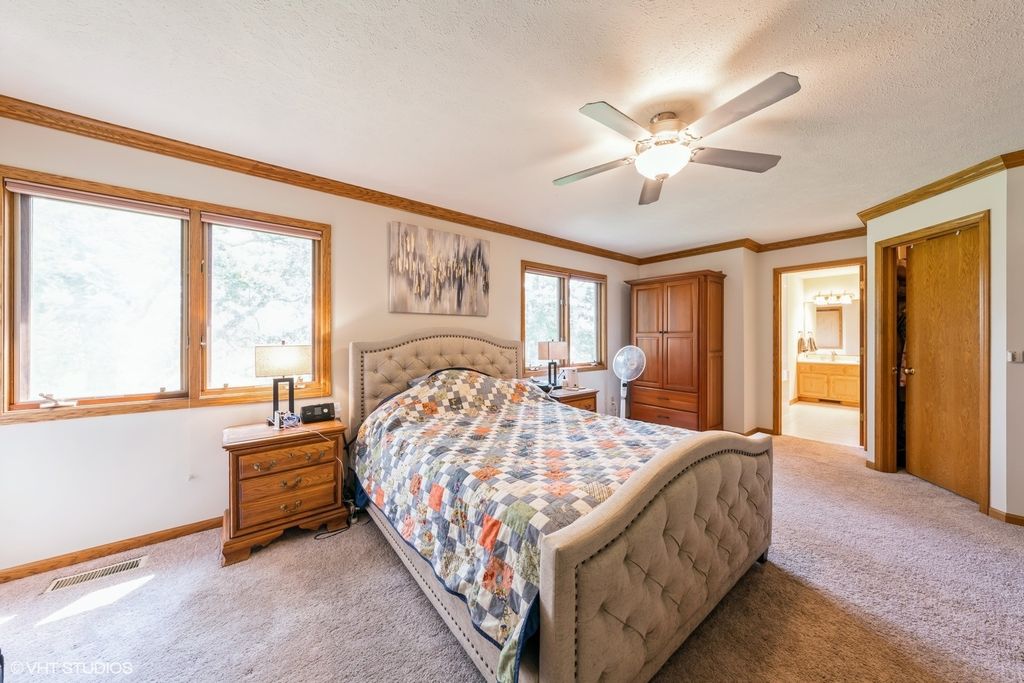 Elegant 3-bedroom, 3.5-bath townhome bordering a stunning golf course with a walkout lower level opening to lush green space. Sun-filled interiors feature expansive windows that showcase the scenic surroundings. The main level offers a spacious living room with a stone gas fireplace, hardwood floors, and rich natural woodwork flowing into a dining area and patio door access to the deck. You'll enjoy the updated fans throughout the home and a recently updated half bath on the main floor. The gourmet kitchen features stainless steel appliances, granite counters, and warm wood finishes, along with a sunlit breakfast nook with a sliding glass door that opens to a charming patio. Upstairs, you'll find 3 bedrooms including a generous primary suite with a luxurious bathroom featuring a step-in shower and a relaxing soaking tub. Second-floor hallway laundry offers effortless accessibility. The finished walkout lower level provides a large recreation room with abundant natural light, flexible space for a home office or craft room, and ample storage. Take your golf cart right out through the double doors straight onto the golf course! Additional highlights include ample guest parking directly in front of the home and a convenient location near I-88 and local shopping. Experience the perfect harmony of comfort, modern style, and everyday functionality!