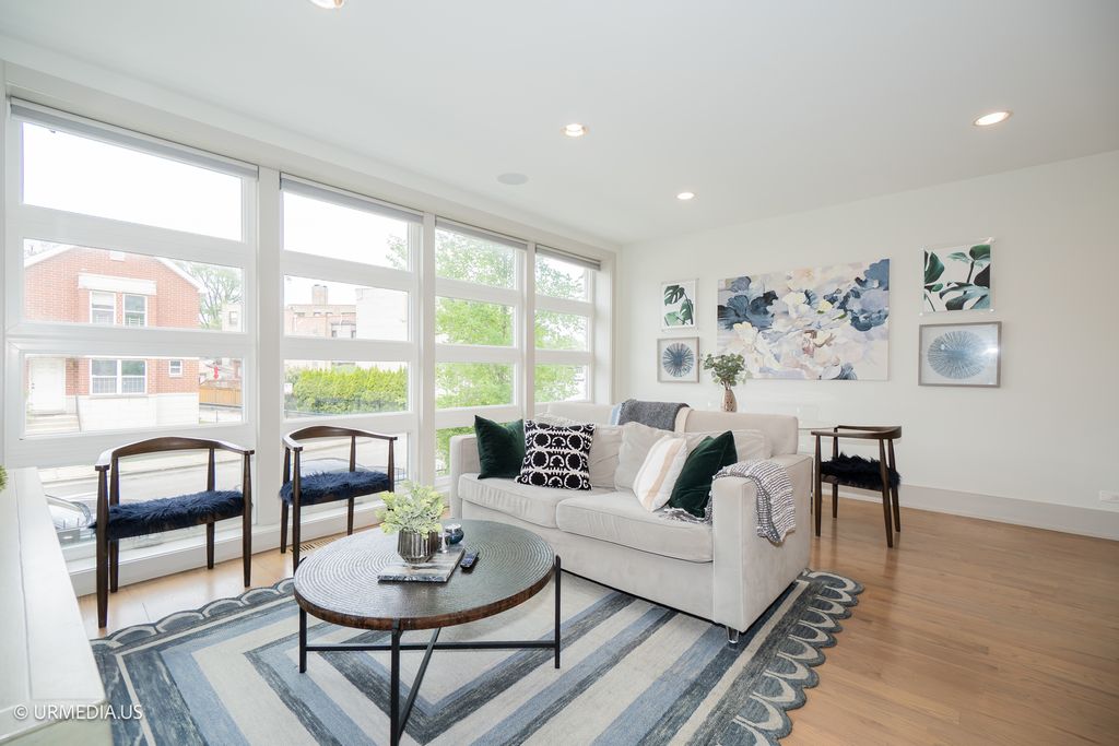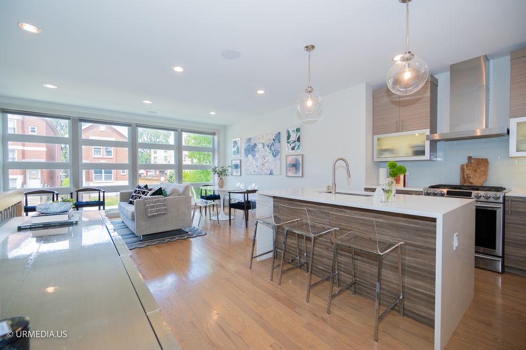 Experience luxury living in the heart of Kenwood. This expansive 5-bedroom, 3-bath duplex offers the space and comfort of a single-family home, blending modern design with thoughtful craftsmanship and high-end finishes throughout. Step inside to an open-concept main level featuring rich hardwood floors and floor-to-ceiling windows that flood the home with natural light. The chef's kitchen is a true showpiece, highlighted by a waterfall quartz island, premium stainless steel appliances, 42" soft-close cabinetry with frosted glass accents, and a sleek glass tile backsplash-perfect for both entertaining and everyday living. The main level includes three spacious bedrooms, while the lower level offers two additional bedrooms and a generous family room with a modern electric fireplace, custom built-ins, a wet bar, and a wine fridge. The bathrooms showcase designer details, with the primary bath offering a spa-like retreat featuring a floating vanity, rain shower, body sprays, and elegant marble tile. The primary suite also includes recessed lighting, decorative sconces, a statement chandelier, and abundant closet space. Additional highlights include ample storage, garage parking, and access to a shared rooftop deck with breathtaking views of Lake Michigan and the downtown skyline. Set within a fully gated building, this home is steps from the lakefront, parks, shops, and dining-offering a rare opportunity to live in one of Chicago's most historic and picturesque neighborhoods. With quick access to Lake Shore Drive, Metra, and CTA express buses, downtown Chicago is just 20 minutes away-combining luxury, space, and convenience in one exceptional home.