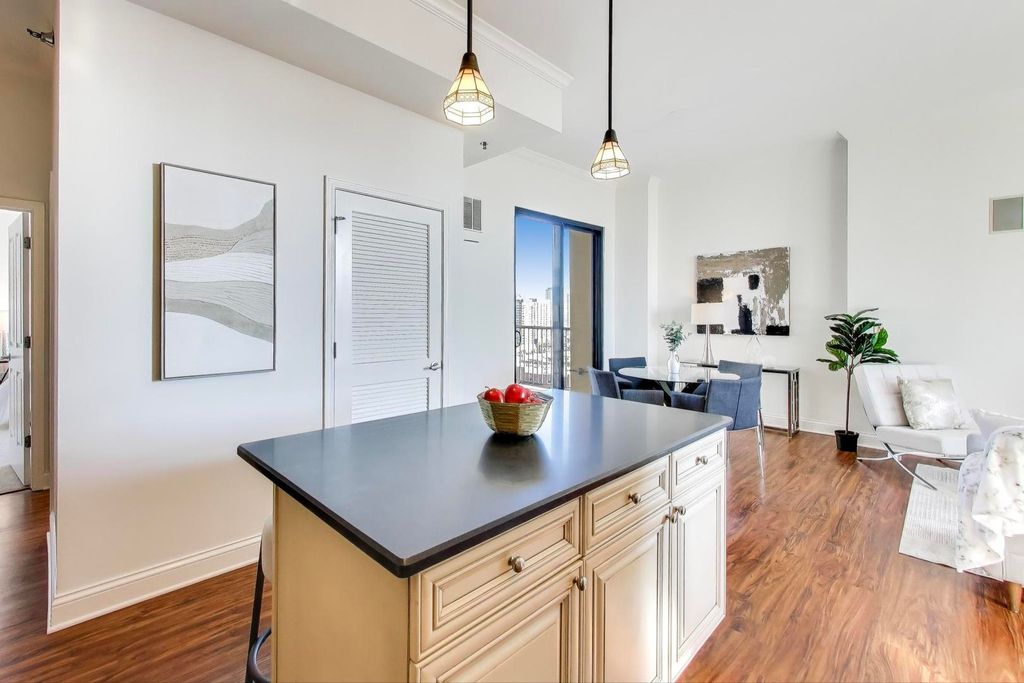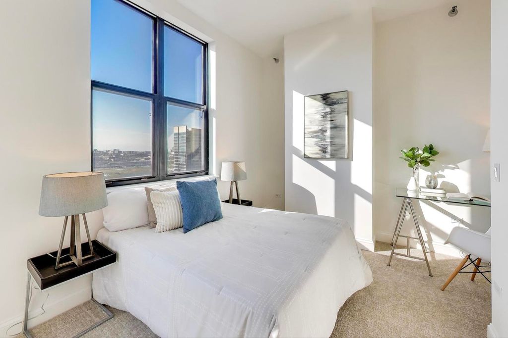 Gorgeous 2 bedroom / 2 bath CORNER UNIT in south loop featuring incredible natural light and TWO exceptional outdoor spaces-- a large, private 230sf terrace plus a separate balcony. Highly upgraded, this unit boasts a kitchen with stainless steel appliances, granite counter tops, tiled backsplash and custom cabinets with a large island for entertaining. The combined living/dining rooms showcase custom white built-in shelving, ample space for entertaining, and a sliding door that opens to 25' x 9' terrace with rare, unobstructed sunrise to sunset views! On top of an expansive east lake view, you'll also experience postcard perfect views of the city looking south and west as far as the eye can see! This special unit has a split bedroom layout with the primary bedroom accommodating a king-sized bed, a large walk in closet, brand new carpeting plus a private sliding glass door to the terrace. The primary bathroom features an upgraded glass enclosed shower with new contemporary tile surround and gorgeous penny tile on the basin. Plus, there is a large, separate jetted tub perfect for relaxing after a long day. The second bedroom is ample size with brand new carpeting as well and highlights a private balcony off the room with south and west views! This unit is equipped with speakers throughout, in-unit washer/dryer and individually controlled furnace heat and air conditioning. The building features a 24-hour doorman, fitness center and package room. Pet friendly building with a dog run and dog park close by. A premier parking space is being sold with the unit for additional $25,000. Enjoy being in the center of everything south loop offers--dining, entertainment, transportation, shops, etc.
