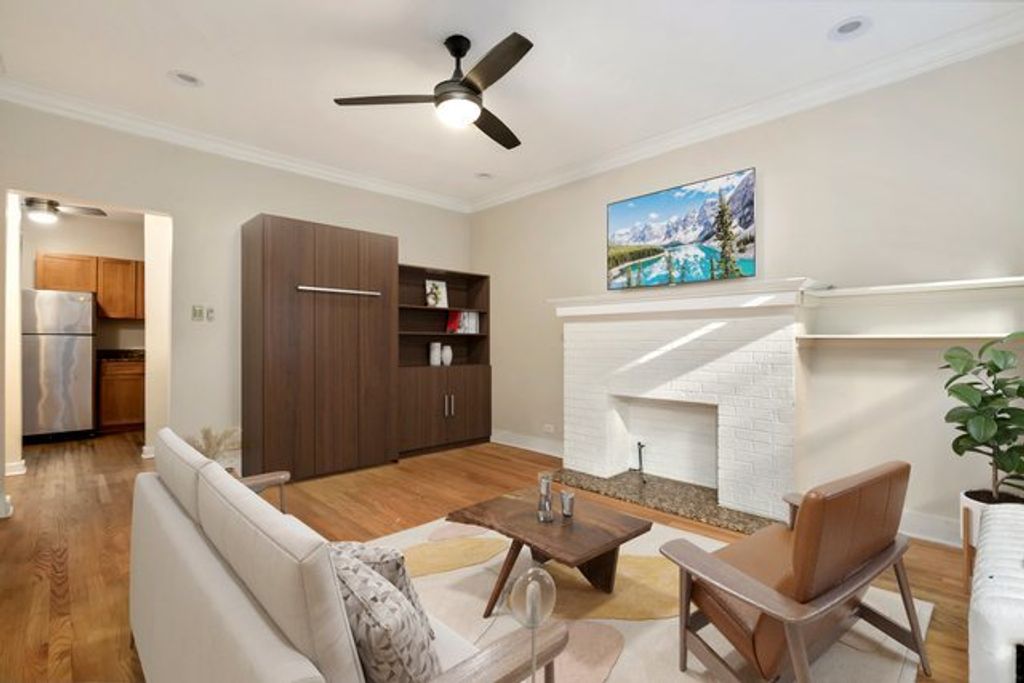Charming Uptown studio on sought-after Lakeside Place! Nestled on a tree-lined street with classic brick architecture, this home offers easy access to the lake, CTA, grocery stores, and all the vibrancy of Uptown. Featuring vintage character with hardwood floors and a decorative fireplace, The thoughtful layout maximizes space and function. Walkthrough closets lead to a beautifully updated bath with stone tile surround, while the refreshed kitchen provides room for dining. A rare private balcony overlooks the landscaped courtyard-perfect for morning coffee or evening relaxation. Updated lighting, remote-controlled ceiling fan, and fresh paint throughout.