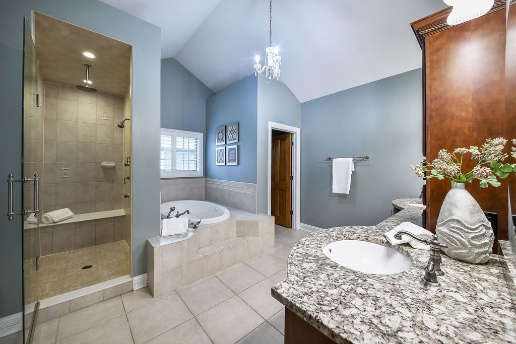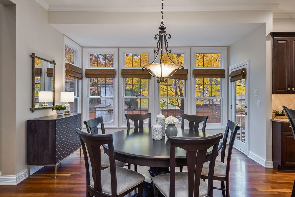This stunning East Highlands residence offers 4003 square feet above grade, plus an impressive 2,038 square feet in the partially-finished deep-pour basement just one mile to downtown Naperville! This finely crafted home is light and bright with a superior open layout. Classic divided-light windows with transoms, custom white shutters and beautiful white millwork make this home timeless. Solid Brazilian cherry hardwoods span the main level and second floor landing. A soaring two-story entry welcomes guests and continues into the family room with a floor-to-ceiling limestone fireplace and a wall of windows that overlook the entertaining backyard. The chef's kitchen is equipped with Viking professional appliances, miles of cabinetry, a center island, and a walk-in pantry. The informal eating area enjoys access to the patio, built-in grill, and private yard. The formal living and dining rooms, complemented by an adjacent butler pantry, offer additional space for gatherings. A private office with custom millwork, a half-bath, and a mud-room complete the first floor. Upstairs, the primary suite is a tranquil retreat with a sitting area, Juliette balcony, and a large walk-in closet with built-in organizers. The spa-like bath boasts dual vanities, a separate jetted tub, and a walk-in shower. The second-floor laundry room, complete with a sink and cabinetry, adds to the home's convenience. Three additional bright and spacious bedrooms each have direct bath access and walk-in closets with custom organizers. The finished basement extends your living space, with a large recreation room, a full bath, and 5th bedroom. The property also includes a three-car tandem garage and a professionally landscaped yard with fabulous entertaining patio, masonry fireplace, and pergola with outdoor kitchen! Acclaimed school district 203 - Highlands Elementary, Kennedy Jr. High, Naperville Central HS. This home has it all! Layout, location, and amenities!