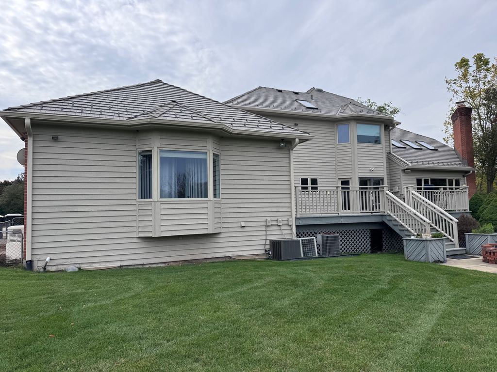 Spectacular custom home on a premium 2-acre lot features include solid maple hardwood floors with cherry inlays, abundant built-ins, 10 ft + ceilings, recessed lighting, built-in speakers, and large windows overlooking the grounds and wooded preserve. A 4-car garage complements a dramatic two-story foyer opening to the living and dining rooms. The family room boasts soaring ceilings, skylights, a fireplace, wet bar, and custom built-ins. The gourmet kitchen features a large island, premium cabinetry, stainless appliances, and an oversized eating area. The first-floor master suite offers a deck entrance, sitting area, spa bath with whirlpool tub, separate shower, dual vanities, and closets. The second level includes four spacious bedrooms and two full baths. The finished English walk-out lower level features a large rec room, exercise room, play room, craft room, a sixth bedroom and a full bath. All new cedar shake roof and gutters ($160k upgrade).