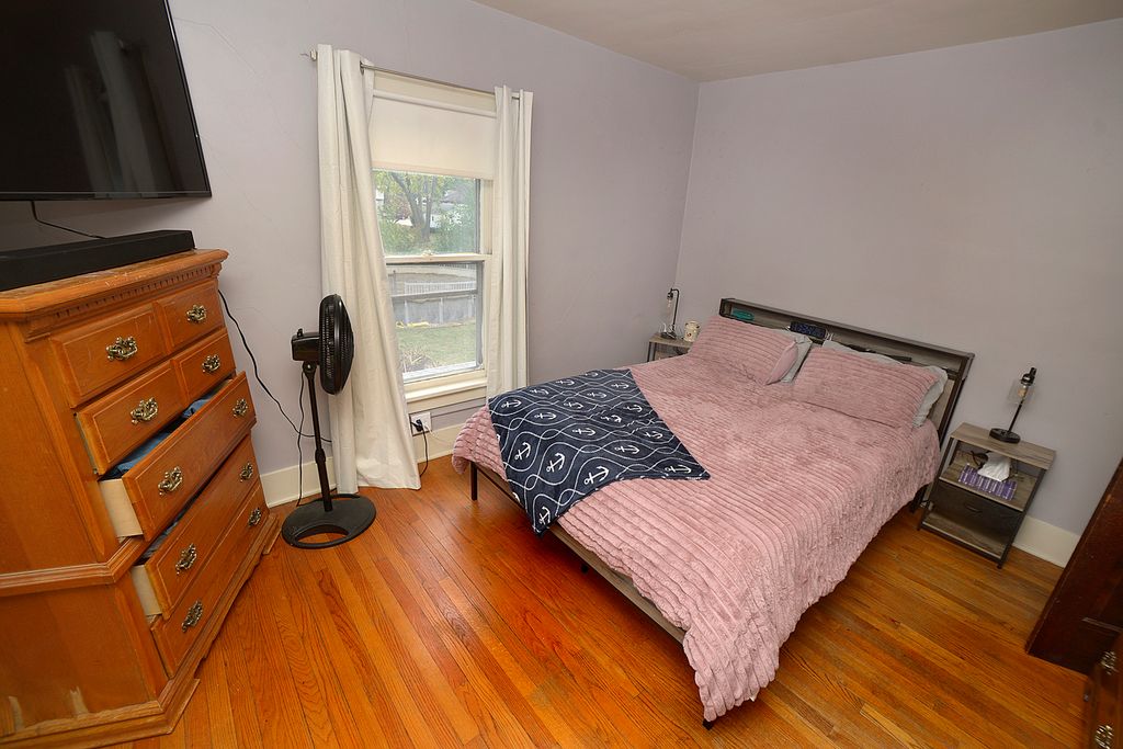 Spacious and full of character, this 5-bedroom, 2-bathroom two-story home offers beautiful hardwood floors throughout. The main level features a bedroom, full bath, and convenient laundry area, along with a separate dining room and a cozy living room complete with a gas fireplace. Upstairs, you'll find four additional bedrooms, a generous 10x7 walk-in closet, and plenty of storage space. The impressive detached 2.5-car garage (30x24) includes a loft, 17-foot peak ceilings, two 7-foot doors, a wood burner, and French doors opening to the backyard. Outdoor living is a highlight here. Relax on the L-shaped 19x7 screened-in porch, enjoy the 30' above-ground heated pool (installed in 2020), or entertain under the 14x12 screened gazebo with power, ceiling fan, and deck overlooking a peaceful pond. A fire pit area adds the perfect finishing touch. Furnace and A/C were both replaced in 2023