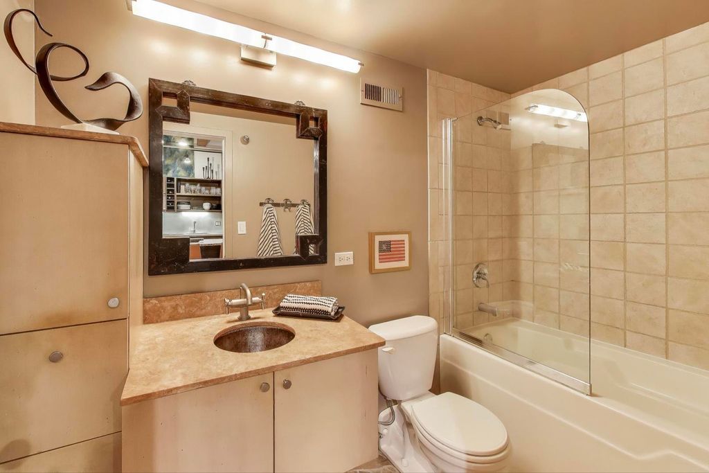 This bright and spacious 1-bedroom, 1-bathroom offers an open-concept layout with a sleek kitchen with SS appliances, a large island, and ample cabinet space - perfect for cooking and entertaining. A rare walk-in pantry adds valuable in-unit storage. The bedroom offers a peaceful retreat with a generous walk-in closet, and the full bathroom includes a soaking tub with glass door for a spa-like feel. Step outside to your private, south-facing balcony- ideal for morning coffee or evening gatherings. Additional highlights include new heat and AC, gas fireplace, in-unit laundry, large storage locker, and dedicated gated exterior parking space. Gotham Lofts residents enjoy a range of amenities, including on-site mgmt., daily maintenance, butterfly system, fitness center, and bike room. All of this just minutes from downtown, with easy access to the highway, blue line, shopping, and dining.