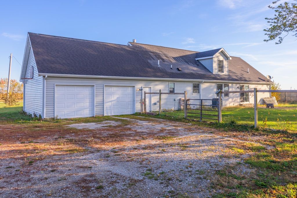 This charming Cape Cod-style home built in 2008 sits on 2.67 acres and offers everything you need for country living - a house, fenced yard, pasture, machine shed, livestock barn, and more - all just minutes from I-55. Inside, you'll find a light and bright kitchen with great storage and updated appliances, ample counter space with barstools, large area for dining room or family room with sliding glass doors to the fenced in back yard with swingset, a cozy living room with a gas fireplace, a convenient main-floor laundry room and half bath, and a spacious first-floor primary bedroom with a private bath. Upstairs are two exceptionally large bedrooms, a full bath, and a loft area perfect for hobbies, play, or relaxation. This home has ample storage space throughout! The property is well set up for animals and equipment alike. The livestock shed (approx. 80x80) includes three 10x10 stalls, one 12x10 stall with outdoor access, a chicken house, feed lot, 60x80 indoor riding arena, tack room, wash rack, and loft storage area. Additional features include automatic livestock waterers, gravel lots, pasture, and electric fencing. The machine shed (approx. 64x30) is half concrete and half gravel, featuring a workbench and loft storage. This farmstead is the perfect blend of comfort and functionality - ideal for those seeking a peaceful rural lifestyle with room for animals and projects!