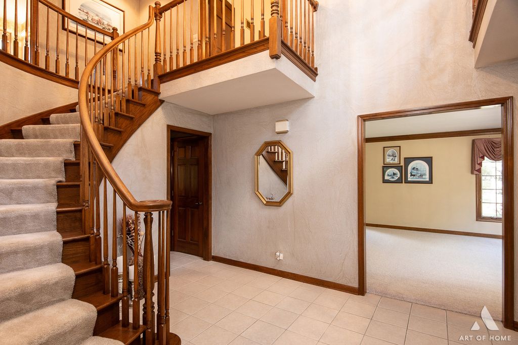 Welcome to this beautiful, well maintained, 2 story traditional home with almost 5,400 sq ft of living space with 5 bedrooms, 4.5 bathrooms, and a 3 car attached garage, located on a secluded lot in highly desirable and peaceful Royal Fox Subdivision in St. Charles. Home features a main level with a cozy living room, a formal dining room accented by elegant French doors, a stunning foyer with a beautiful round tray ceiling and a staircase, a private office with custom built-in bookcase, a great family room with a brick gas fireplace, custom built-in cabinetry, a wet bar, a high beamed ceiling, and two new Velux skylights with new remote control blinds. It also has a full bathroom, a good sized laundry room with newer washer and dryer, a very spacious breakfast nook, and kitchen that is a heart of this amazing home, with a big island, appliances, oak cabinets, Corian countertops, and a pantry closet. Upper level offers a generous master suite with an updated bathroom and his and hers closets, another two good sized bedrooms, a loft with an amazing view, a full bathroom, and an extended private suite with a full bathroom and a large walk-in closet. Finished basement presents a great recreation room with a lot of storage, a good sized bedroom with beautiful cedar walk-in closet, a craft/sewing room that can be converted into a bedroom, an updated half bath, and a enormous utility room. Hardwood floors, carpets, built-in shelvings, and stunning vaulted, beamed cathedral ceilings highlight this beautiful home. Gorgeous backyard offers a substantial cedar, stained deck that is perfect for entertaining guests. New roof (2025), furnaces (2024 & 2022), A/Cs (2024 & 2020), water heaters (2025 & 2024). Close to top highly ranked St. Charles School District 303, stores, restaurants, public transportation, parks, trails, and The Royal Fox Country Club. Please schedule your showing today, before it's gone!