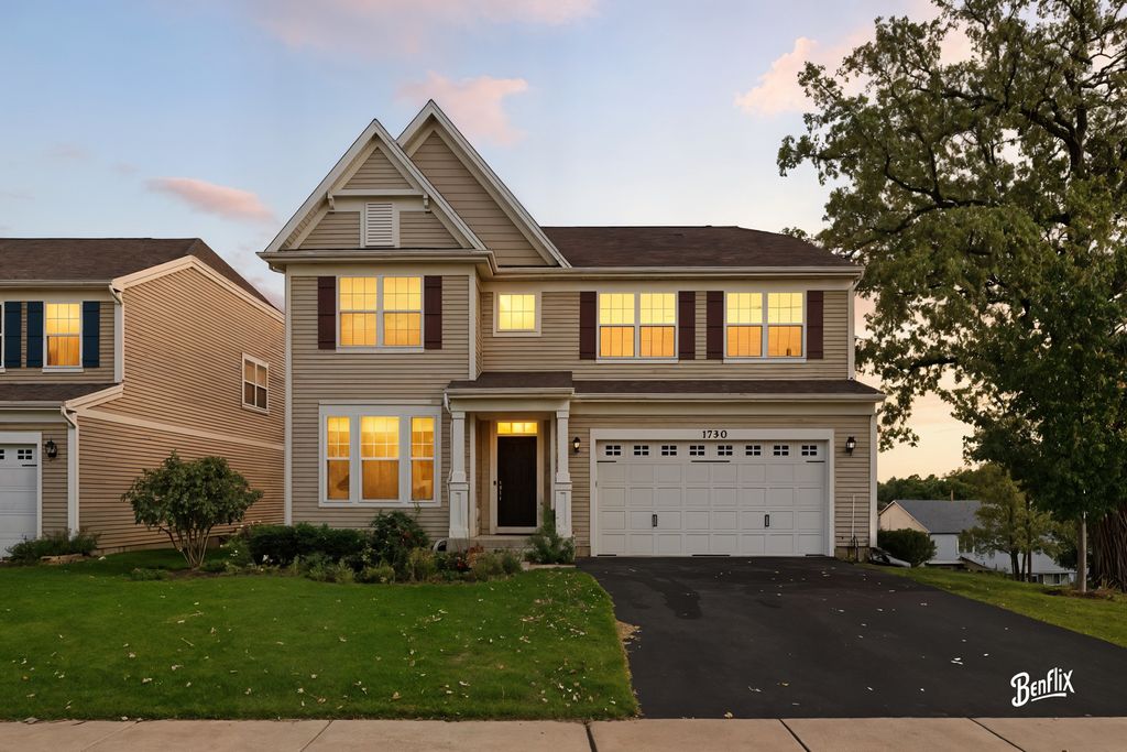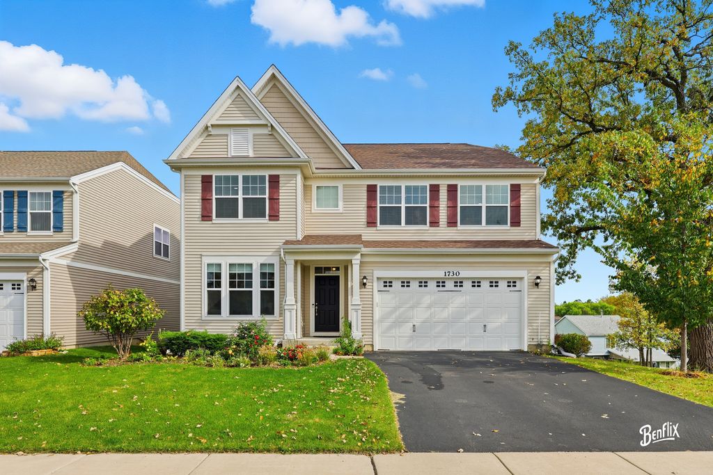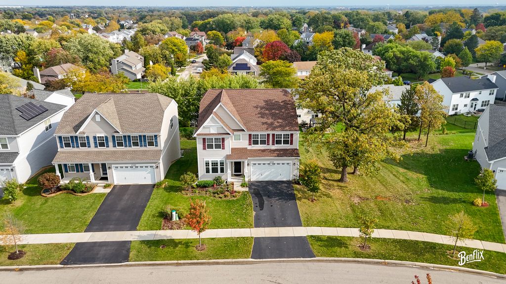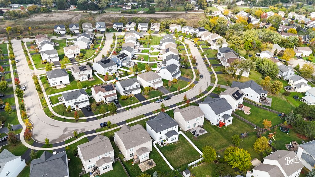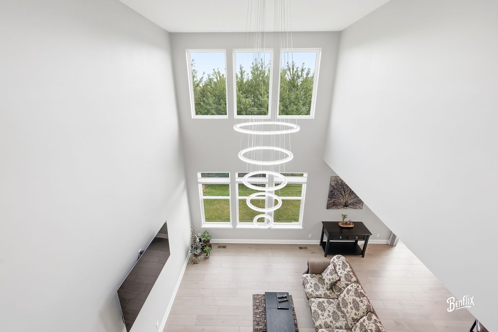 Welcome to this bright and spacious 4-bedroom, 3-bath home, just 5 years new and perfectly designed for today's family lifestyle. Located in the sought-after Maple Hill community, this home offers open-concept living, natural light-filled spaces, and plenty of room to grow. Step inside to find soaring cathedral ceilings and engineered hardwood floors connecting the family, dining, and kitchen areas. The layout creates a warm and inviting flow-ideal for family gatherings and everyday living. The stunning kitchen features quartz counters, a large island with breakfast bar, and stainless-steel appliances including double ovens and a 5-burner cooktop. A step-in pantry, eat-in area, and sliding door to the deck make family meals and entertaining a breeze. The family room's large windows and statement chandelier fill the main floor with light. A main-level office and full bath offer great flexibility-perfect for guests or a home workspace. The spacious laundry room has room to add a mudroom area, with a large closet for extra storage. Upstairs, a generous loft overlooks the main living area and can be used as a playroom, game room, or homework station. The primary suite is your private retreat, complete with a huge walk-in closet and a beautifully appointed ensuite featuring a double vanity, shower, and private water closet. Three additional bedrooms and a full bath provide comfortable space for everyone. The finished walk-out basement expands the living space even further with a media room (projector and screen included), a large recreation area, and a dedicated workout zone-all with low-maintenance LVP flooring. A 3-car tandem garage offers plenty of space for vehicles, bikes, and storage. Thoughtful features like recessed lighting, whole-house humidifier, water softener, filtration system, and reverse osmosis drinking water complete this move-in-ready family home. Maple Hill is known for its friendly neighbors and close proximity to schools, parks, and shopping-everything a growing family could want!!