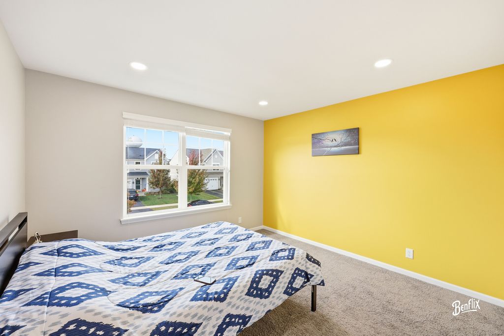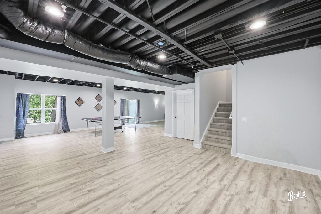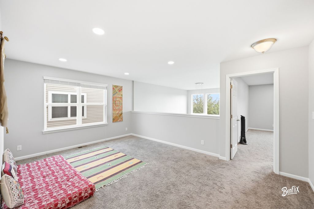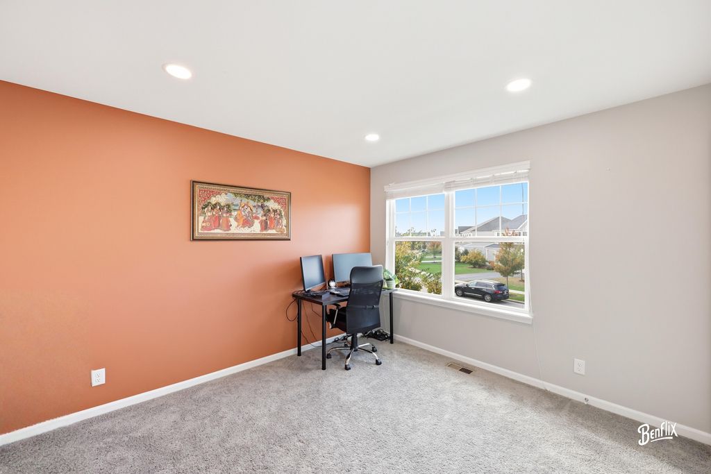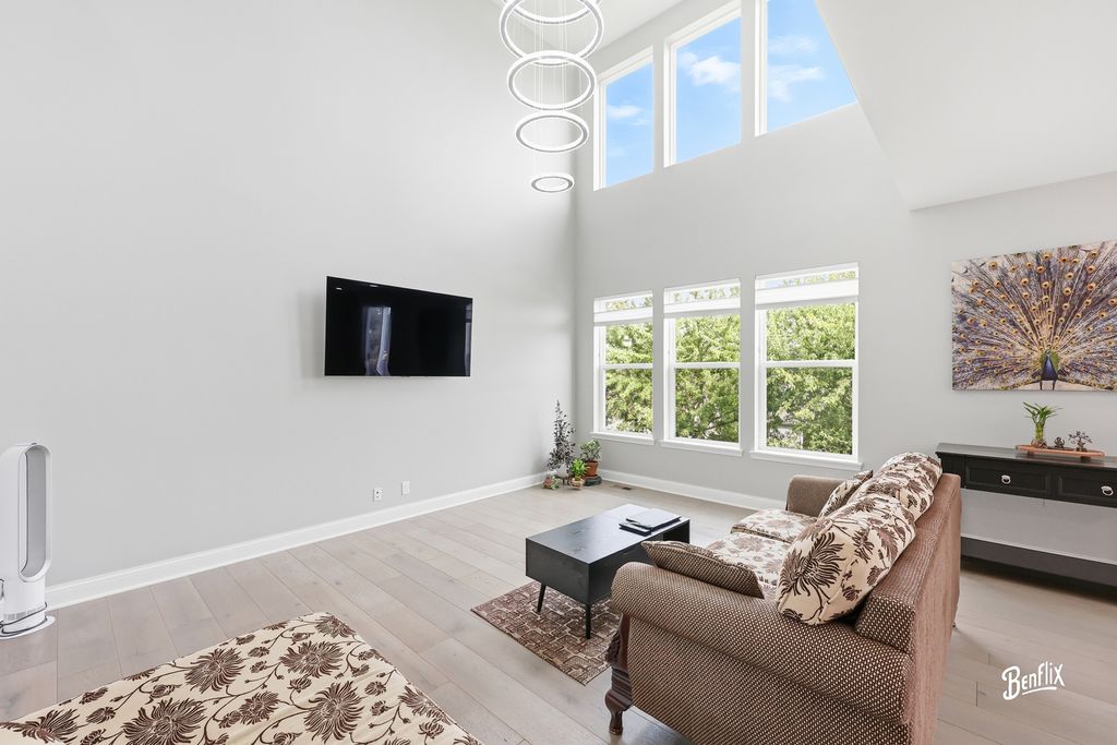 Welcome to this bright and spacious 4-bedroom, 3-bath home, just 5 years new and perfectly designed for today's family lifestyle. Located in the sought-after Maple Hill community, this home offers open-concept living, natural light-filled spaces, and plenty of room to grow. Step inside to find soaring cathedral ceilings and engineered hardwood floors connecting the family, dining, and kitchen areas. The layout creates a warm and inviting flow-ideal for family gatherings and everyday living. The stunning kitchen features quartz counters, a large island with breakfast bar, and stainless-steel appliances including double ovens and a 5-burner cooktop. A step-in pantry, eat-in area, and sliding door to the deck make family meals and entertaining a breeze. The family room's large windows and statement chandelier fill the main floor with light. A main-level office and full bath offer great flexibility-perfect for guests or a home workspace. The spacious laundry room has room to add a mudroom area, with a large closet for extra storage. Upstairs, a generous loft overlooks the main living area and can be used as a playroom, game room, or homework station. The primary suite is your private retreat, complete with a huge walk-in closet and a beautifully appointed ensuite featuring a double vanity, shower, and private water closet. Three additional bedrooms and a full bath provide comfortable space for everyone. The finished walk-out basement expands the living space even further with a media room (projector and screen included), a large recreation area, and a dedicated workout zone-all with low-maintenance LVP flooring. A 3-car tandem garage offers plenty of space for vehicles, bikes, and storage. Thoughtful features like recessed lighting, whole-house humidifier, water softener, filtration system, and reverse osmosis drinking water complete this move-in-ready family home. Maple Hill is known for its friendly neighbors and close proximity to schools, parks, and shopping-everything a growing family could want!!