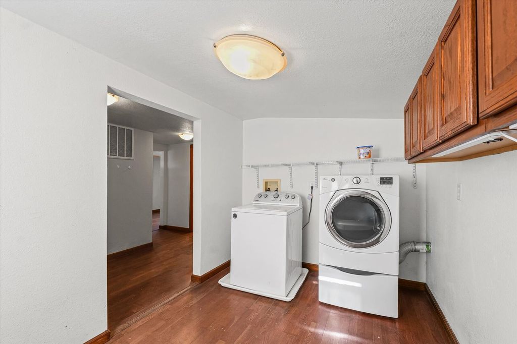Spacious Corner-Lot Home with Modern Comforts and Charm! This inviting home has so much to offer, starting with a huge primary bedroom with sliding barn-style door and walk-in closet with luxurious jetted tub that can be accessed from both the primary suite and the main living area. The kitchen is thoughtfully designed with ample storage, a built-in microwave nook for extra counter space, and stainless steel appliances, including a dishwasher and refrigerator. Enjoy the convenience of a washer and dryer included, plus a large, detached heated 2-car garage with an additional storage room-perfect for projects or extra belongings. Step outside to a fully fenced backyard on a beautiful corner lot, offering both privacy and curb appeal.