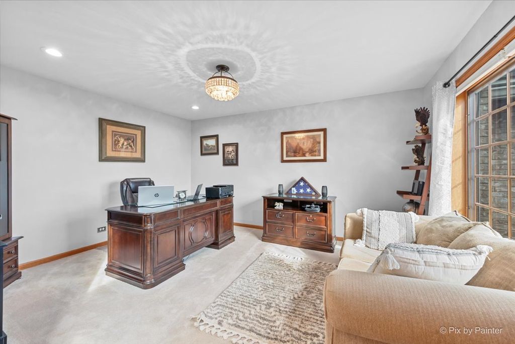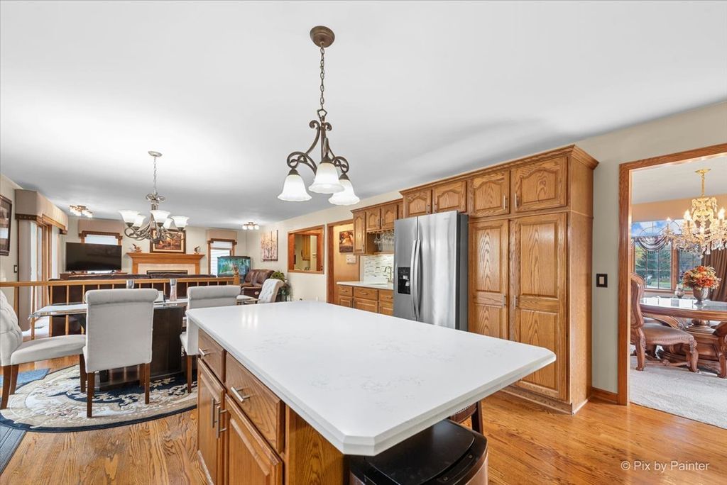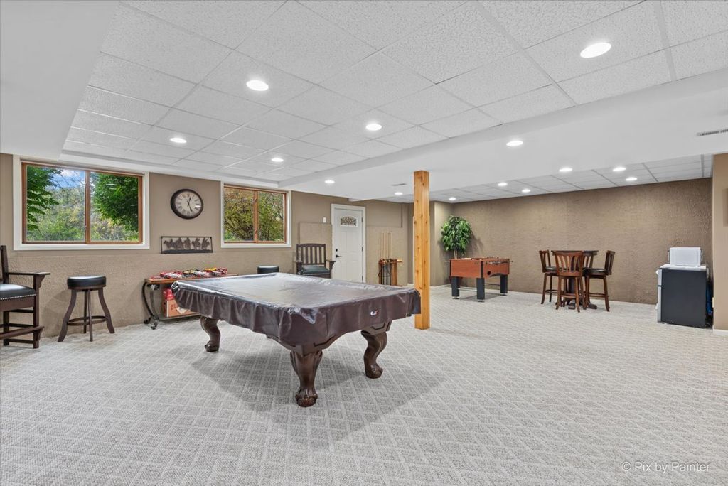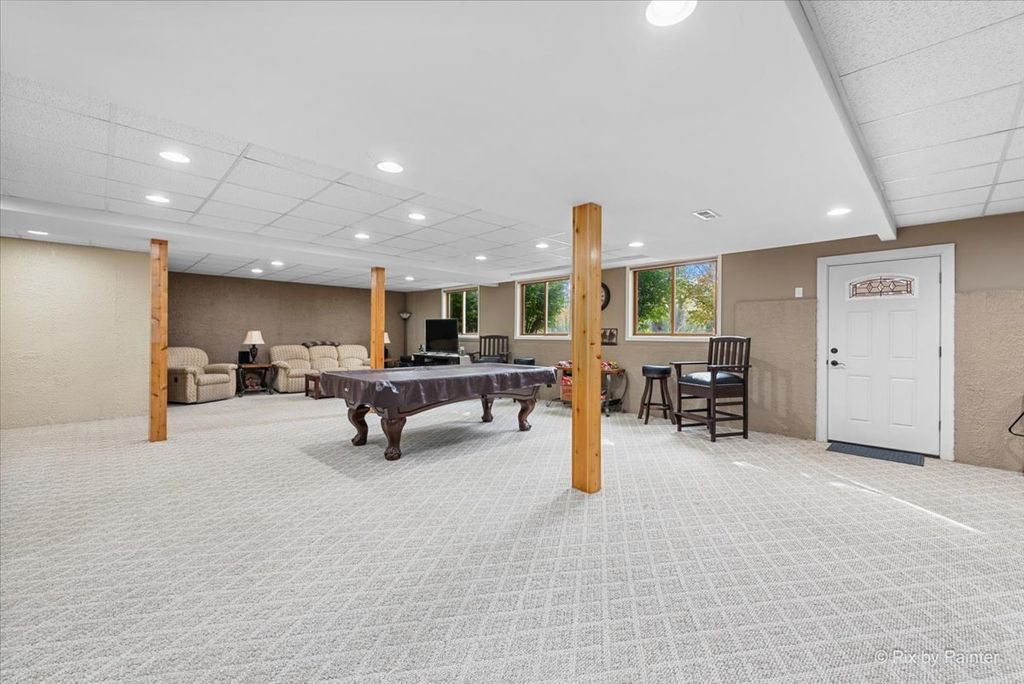 WELCOME HOME to the serenity and space you have been searching for. Nestled on a premier CORNER LOT spanning nearly ONE FULL ACRE, this meticulously maintained 4-bedroom, 3.5-bath residence offers 4,170 square feet of thoughtfully designed living space where families gather and memories are made. Built in 1993 with PREMIUM 2X6 EXTERIOR WALL FRAMING for superior insulation and energy efficiency, this home features a striking BRICK FRONT FACADE and cedar siding that blend timeless curb appeal with quality construction designed to last. Step through the grand two-story foyer framed by stunning arched Palladian windows and gleaming oak woodwork. The main level flows effortlessly with a formal living room featuring soaring vaulted ceilings, a separate dining room perfect for gatherings, and a private main-floor office ideal for today's work-from-home lifestyle. The spacious eat-in kitchen showcases attractive countertops, stylish backsplash, center island with seating, abundant oak cabinetry, pantry storage, and STAINLESS STEEL APPLIANCES including double ovens and garbage disposal. The kitchen opens seamlessly to the breakfast nook and inviting family room with cozy gas fireplace and walkout access to your private patio and expansive fenced backyard. Upstairs, the luxurious primary suite is your personal retreat with tray ceilings, generous walk-in closet with custom organizers, and spa-inspired ensuite bath featuring a soaking whirlpool tub, separate tiled shower, and dual vanities with double sinks. Three additional well-sized bedrooms share a tastefully appointed full bath, plus a convenient main-floor laundry room makes daily life easier. The MASSIVE FINISHED WALKOUT BASEMENT adds another 1,389 square feet of versatile living space including a sprawling recreation room perfect for game nights and movie marathons, dedicated exercise area, full bathroom, utility room with automatic dehumidifier system that conveys with the property, and ample storage for all your needs. Quality features throughout provide exceptional value including central air conditioning, CENTRAL VACUUM SYSTEM with separate hoses for upstairs and downstairs convenience, garbage disposal, SUMP PUMP WITH BATTERY BACKUP for added security, and an oversized HEATED 3-CAR GARAGE measuring 30x25 feet with floor drain, garage door openers with remotes, and ample storage for vehicles, tools, and toys. The outdoor living spaces are equally impressive with a large paver patio for entertaining, expansive lawn areas for play and recreation, beautiful perennial gardens, decorative stone retaining walls, and PROFESSIONALLY DESIGNED LANDSCAPE LIGHTING that showcases the home's stunning curb appeal day and night. The LAWN SPRINKLER SYSTEM provides effortless maintenance while the private well and septic system offer independence and control over your utilities. The fenced backyard provides safety and privacy for children and pets while mature specimen trees deliver natural beauty and seasonal interest. Located in the highly desirable RICHMOND COMMUNITY SCHOOL DISTRICT serving Richmond Grade Elementary, Nippersink Junior High, and Richmond-Burton Community High School, this family-friendly neighborhood offers top-rated education close to home. Enjoy easy access to Route 12 and Route 173 for seamless commuting to Crystal Lake, McHenry, Lake Geneva, and beyond. Nearby Chain O'Lakes State Park, McCullom Lake, and Fox River recreation provide endless opportunities for boating, fishing, hiking, and outdoor adventure. This is MORE THAN A HOUSE-it is a lifestyle of comfort and connection on NEARLY ONE ACRE where families grow together. With thoughtful systems, and quality construction, this home is move-in ready and built to serve your family for decades to come.