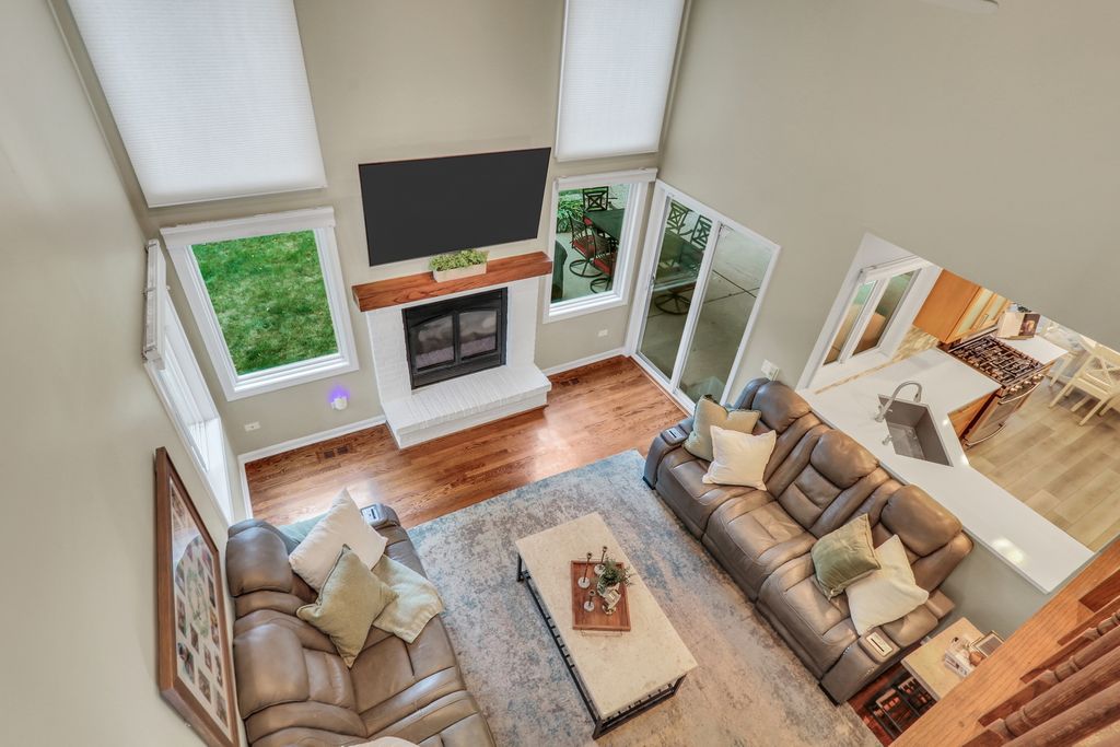 This South Ridge stunner checks ALL the boxes! Gorgeous curb appeal! Sit back and rock away out on the covered front porch. Over 3000 sq feet of finished living space in this beautiful Bedford model! Gleaming hardwood floors carry you throughout this open floor plan. The two story family room will become the hub of the home! Stone surround, gas log fireplace with wood beam mantle, hardwood floors, and soaring ceilings! LARGE Dining Room perfect for hosting! Exquisite kitchen remodel only 2 years ago! All SS appliances, NEW flooring, NEW Quartz counters, backsplash & lighting! Absolutely adorable breakfast niche with custom wall paneling! Spacious Living Room and first floor office complete the first floor. FABULOUS Primary suite with hardwood floors, TWO closets, & private updated bathroom. Three lovely sized bedrooms share adorable hall bath! Finished lower level with recreation room, 5th bedroom or flexible space & so much storage! NEW LVP Flooring! The backyard will become your fun zone! HUGE Covered patio & brick paver walk to built in fire pit- perfect for fall nights! Private fenced yard! Such a fabulous location- close to EVERYTHING! Parks, aquatic center, shopping, amusement/entertainment, dining, farmers market, schools & major roads.