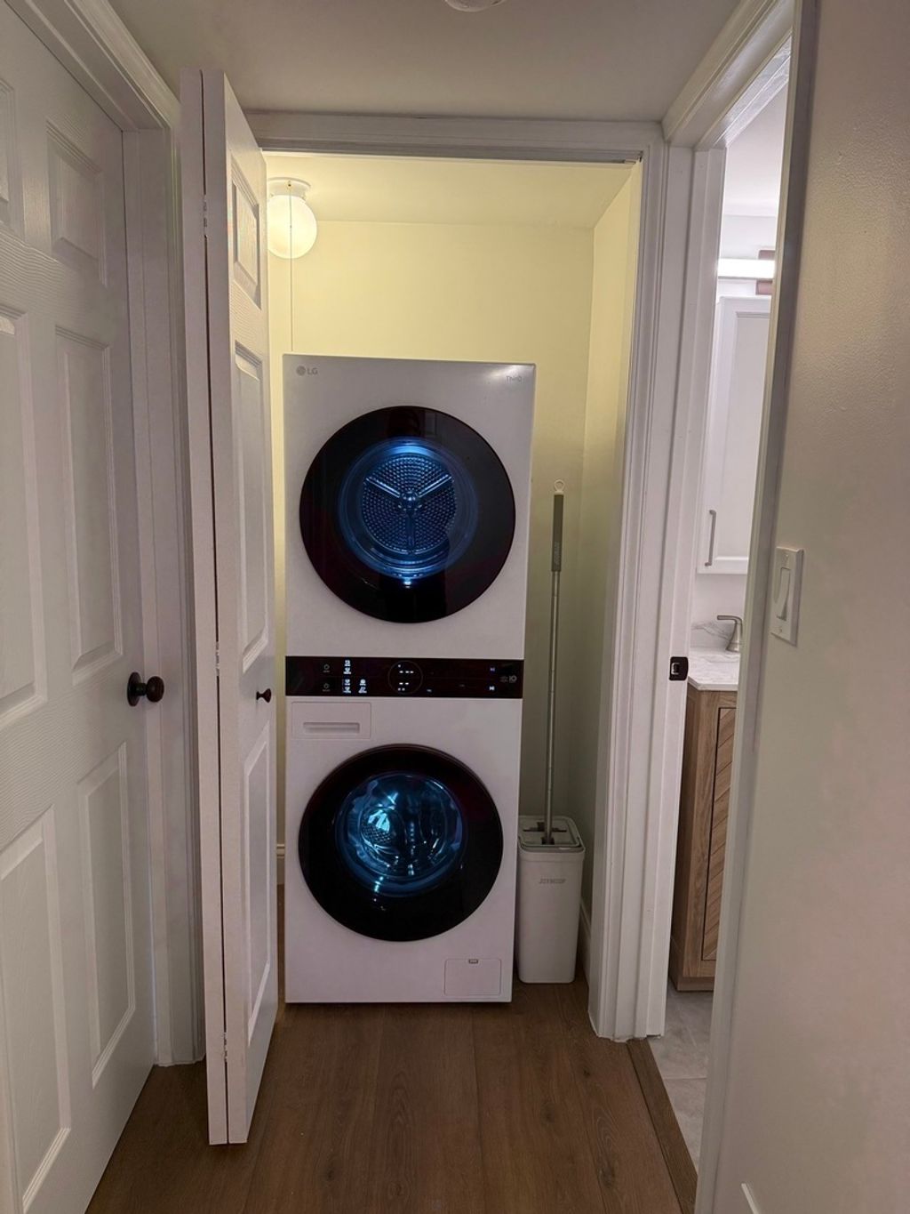 Welcome to Highland Lakes! Move right into this beautifully renovated 2 bedroom, 1.5 bath condo offering modern finishes, abundant natural light, and an open flowing layout. The spacious living and dining areas feature luxury vinyl plank flooring and open seamlessly into a stylish kitchen with a breakfast bar, white shaker cabinets, quartz countertops, new stainless steel appliances and a spacious pantry. Enjoy the large living room with access to your private balcony overlooking the serene courtyard and fountain pond, perfect for morning coffee or evening relaxation. Down the hall you find 2 spacious bedrooms, both with new luxury vinyl floors as well. Additional highlights include: new bathroom vanities and light fixtures. New energy-efficient windows. New furnace, air handler, and A/C compressor. New doors, flooring, and shelving throughout. In-unit washer and dryer for convenience. Beautiful, secure building with a newer roof and parking lot. Assessments include water, gas and common insurance. One assigned parking space included plus plenty of guest spaces are also available. Perfectly located within walking distance to Yorktown Mall, restaurants, and shops, with quick access to downtown Lombard, Metra, I-88, and I-355. Start the fall season in your new home at Highland Lakes - where comfort, convenience, and style come together!