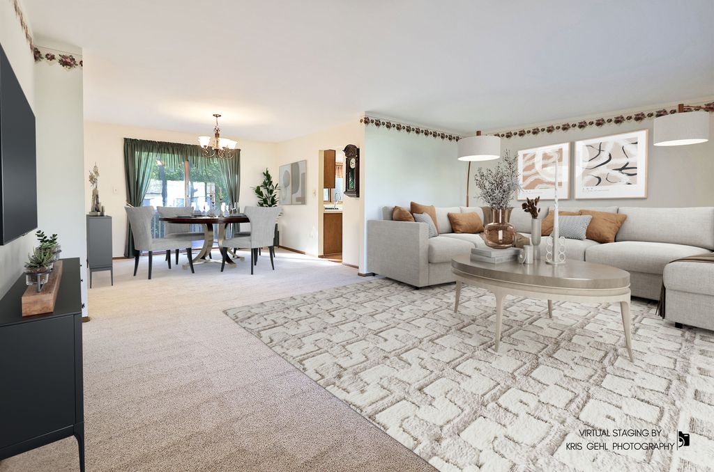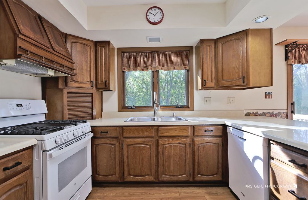 Welcome Home! You'll fall in love the moment you step inside this spacious ranch set on over an acre of land. Freshened up and new carpet and ready for its new owners, this home offers comfort, convenience, and room to grow. Step onto the inviting front porch and into a bright, expansive living room that flows seamlessly into the formal dining area-perfect for entertaining. The kitchen features its own eating area with a sliding door that opens to a large deck overlooking the beautiful, open yard. With 3 generous bedrooms and 2 full baths, including a private primary suite, there's space for everyone. The first-floor laundry provides easy access to the oversized 2-car garage. Downstairs, the full walkout basement offers even more living space with a cozy family room featuring a bar and wood-burning stove-ideal for chilly evenings. The basement is plumbed for a future third full bath and provides plenty of storage options. Outside, there's ample space for an outbuilding or workshop, and you'll love the location-just a short walk to the Metra train station, Antioch Bandshell, the new Sequoit Creek Park, and downtown Antioch with its charming shops and restaurants. Enjoy all of this and more-peace, privacy, and convenience-on your very own acre of land!