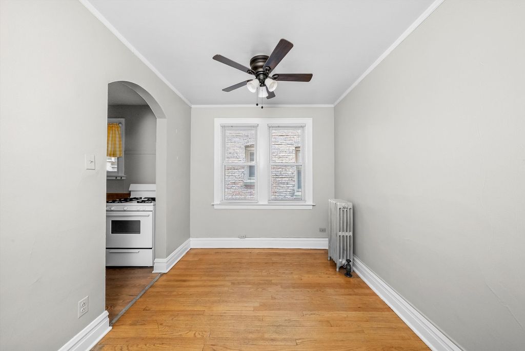 Spacious 1 bed + den/office space in great Berwyn location. Hardwood floors throughout. Nook off of dining room is often used as an office. Heat and water included! Building has nicely landscaped courtyard and on-site laundry. Small Pet Friendly (cats and dogs up to 40lbs, no aggressive breeds, pet fee). Free street parking, and Municipal parking lot 1 block away with off street parking for rent. Onsite property manager. Available now!