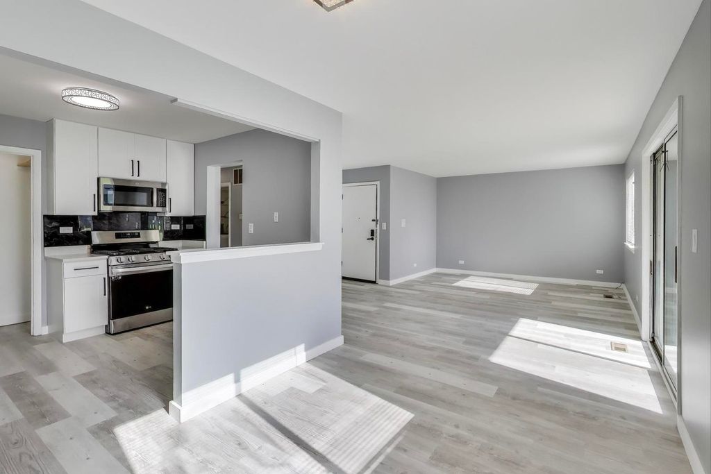 Welcome to Hanover Court in Schaumburg's sought-after Gatewood community by Lexington Homes. This fully renovated first-floor 2-bed/1-bath home blends fresh style with everyday convenience, set on a quiet cul-de-sac with a private 1-car garage and in-unit laundry. Step inside to new luxury vinyl plank flooring and fresh paint throughout. The standout kitchen shines with quartz countertops, brand-new white cabinetry, a modern tile backsplash, and a complete LG stainless package (gas range, microwave, dishwasher, refrigerator) plus new sink/fixtures and a shelved walk in pantry. The spa-fresh bath features a new Kohler tub, modern tile, black fixtures, a granite-top vanity, and updated lighting. Bright, cheerful, and truly move-in ready. Enjoy Gatewood amenities - parks, playgrounds, and a sparkling pool - along with unbeatable access to shopping, dining, and commuting: minutes to Woodfield Mall, Metra, major highways, and O'Hare. Experience the allure of 609 Hanover Court - an exceptional home for owners or investors alike.
