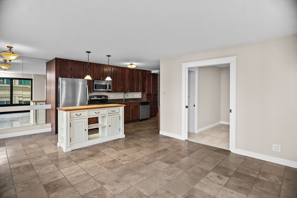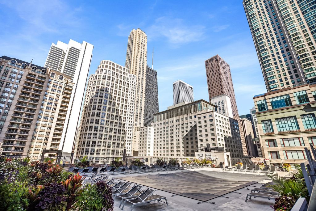 Don't miss this appealing 2 bed and 2 full baths in a terrific River North full amenity building. The open kitchen/living/dining design makes for easy daily life as well as entertaining. The home boasts brand new carpeting in each bedroom, a coveted in unit washer dryer, as well as a garage parking spot included in the price. This well-maintained building includes 24-hour door staff, an outdoor pool with fully renovated sundeck and grilling area, fully-equipped fitness center, private movie theater, party room, business center, and on-site management. Investor friendly, just steps from great shopping, restaurants, and public transportation.