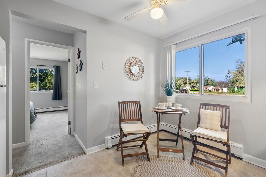 Spacious and accessible 1st floor corner end unit condo located in the heart of Mokena! Enter into a huge living room that brings in tons of natural light. Step outside the sliding glass door to relax on the private patio. Nice kitchen with plenty of cabinets, new dishwasher (2024) and breakfast table space. Huge master bedroom with walk-in closet. Full bath has linen closet. Coin laundry located on the same floor, lockable storage locker also located in the laundry room. Flexicore building, plenty of parking ( parking lot was repaved and sealed recently) in ideal location - minutes from downtown Mokena, Metra, I-80, parks, restaurants and shopping! The common and laundry areas are cleaned weekly! Low HOA dues that include heat, water, sewer, lawn care, and more! Your only extra utility cost is electricity. Whole unit freshly painted (2024) and move in ready!