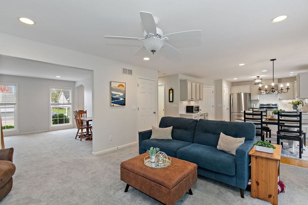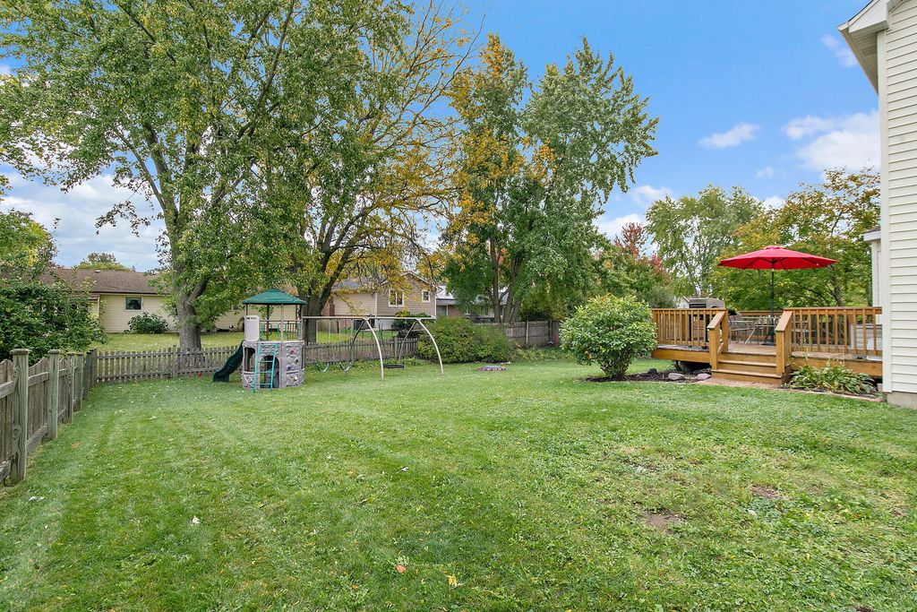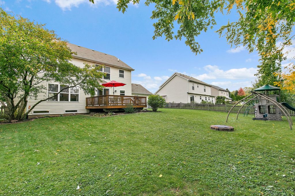 Magazine-worthy and move-in ready, this stunning two-story home in the Meadow Ridge Subdivision is a true standout. Meticulously maintained and styled to impress, this 4-bedroom, 2.1-bath beauty shows like a model home. Step into the welcoming foyer with hardwood floors, where a versatile dining room-currently used as a home office-sits to your left. A conveniently located half bath connects the front entry to the heart of the home: the professionally updated kitchen. A chef's dream, the kitchen features quartz countertops, custom cabinetry, a stylish backsplash, and newer appliances. The adjacent eating area overlooks the deck and fully fenced backyard, with some mature trees for privacy and shade. Off the kitchen, the mud/laundry room offers easy access to the garage and ample space for coats, shoes, and everyday essentials. The family room is warm and inviting, anchored by a charming fireplace flanked by two accent windows-perfect for cozy winter evenings. Natural light pours in through large windows, creating a bright and airy atmosphere. A spacious formal living room adds flexibility for entertaining, a playroom, or a second lounge area. Upstairs, the grand primary suite is a true retreat, featuring a tray ceiling, three oversized windows, and built-in sconces for evening reading. The ensuite bath includes dual vanities, a soaking tub, a separate shower, and two generous closets-one a walk-in. Three additional bedrooms offer great space, natural light, and views of the front and backyard. The hall bath is ideal for guests and family alike. The freshly cleaned unfinished basement with polished floors offers potential for additional living space, while the garage boasts epoxy flooring and ample storage. Step outside to enjoy the fully fenced backyard-perfect for kids and pets-with a playset, firepit, and raised garden beds for your homegrown veggies. Recent updates include fresh interior paint, newer carpeting, and the stunning kitchen renovation. Located close to shopping, medical facilities, recreation, schools, NIU, and interstate access-this home truly has it all. Stylish, functional, and move-in ready... your magazine-worthy dream home awaits.