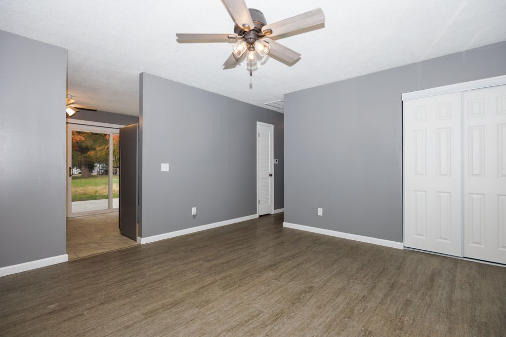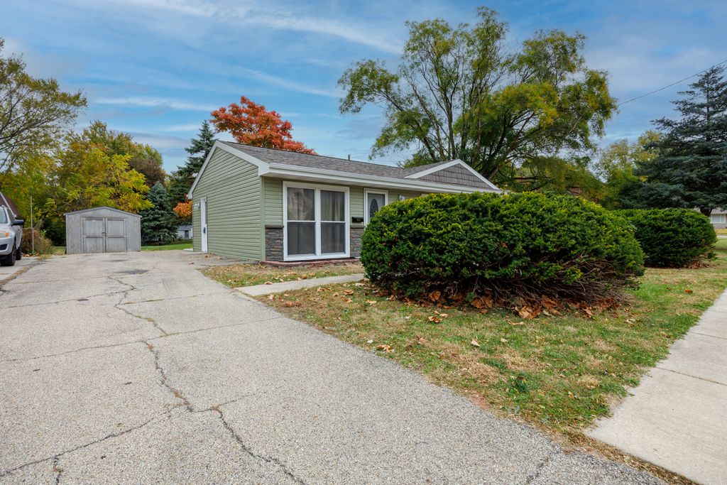 Move-in ready 3 bedroom, 1 bath home situated on a desirable corner lot just minutes from schools and shopping with a newly added large back patio. This home has seen major upgrades in 2025 including a new roof, soffit, seamless gutters, siding, HVAC, hot water heater, concrete patio, outdoor lighting, back door, storm door, and new bathroom sink and toilet. Additional improvements include ceiling fans, closet doors, updated bedroom lights and blinds, and a front door that's just 2 years old. Washer/dryer hookup with gas or electric option, shed stays for extra storage. A fantastic low-maintenance home in a convenient location!