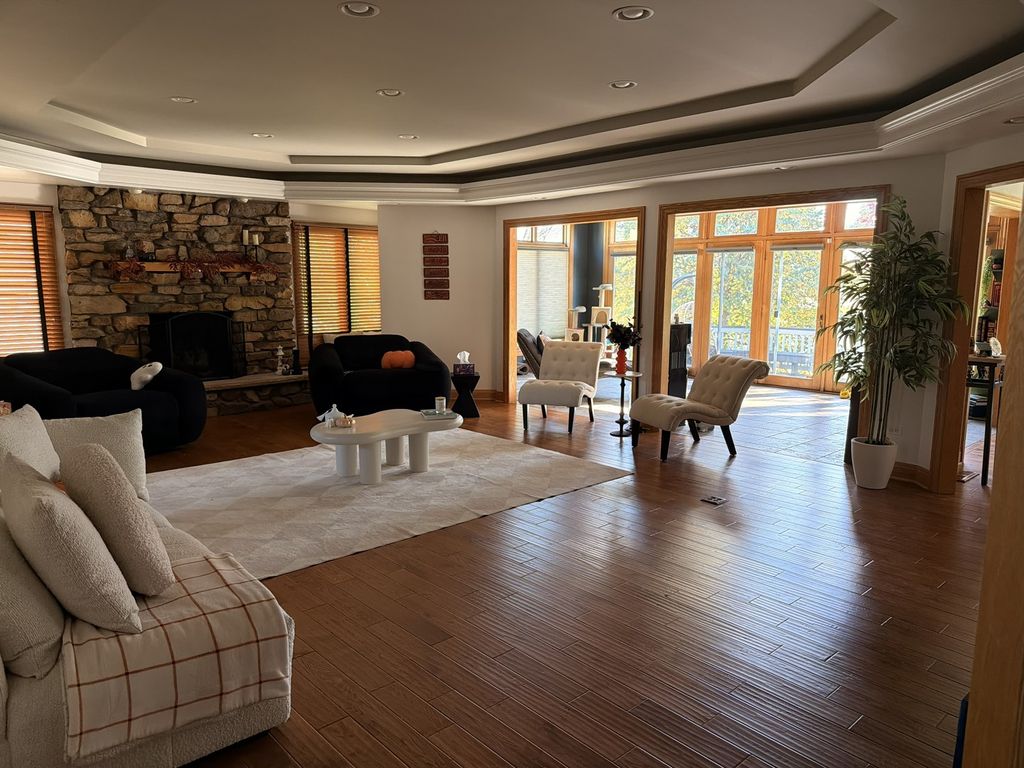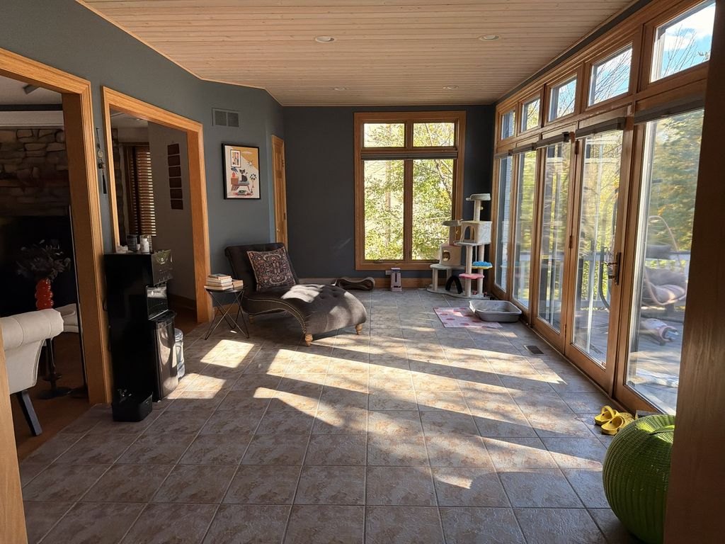 Welcome to 10653 Great Egret Drive - a beautifully updated home with fresh paint, a finished basement featuring a bedroom, full bath, and storage. The kitchen has upgraded countertops and a modern sink, while the master suite includes new flooring, a private sauna, and a balcony with scenic views. Enjoy two sunrooms, three fireplaces, and multiple balconies that bring in natural light and warmth. Recent upgrades include a new roof (2024), garage door openers (2023), exterior lighting, and a resealed driveway (2024). The home also offers a sprinkler system and a rare four-car garage - the only one in Millard Landings. Move-in ready and well maintained, it's the perfect blend of comfort, style, and lakefront living.