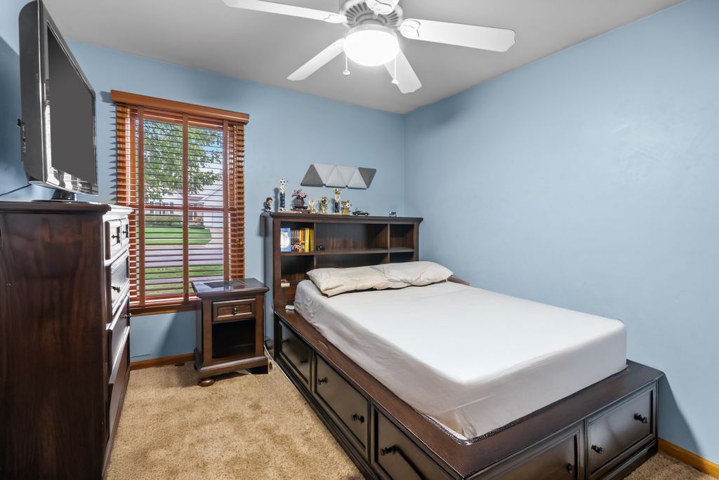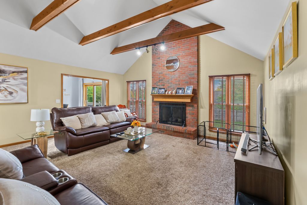 Welcome home to this beautifully maintained ranch offering about 3,100 sq ft! This home features 4 bedrooms and 2 full baths, including a primary suite with a whirlpool soaking tub and separate shower. Walk in to appreciate oak hardwood floors, cedar wood beams, and vaulted ceilings that create an open, warm, and inviting atmosphere. In the living room you will find a brick gas fireplace with a custom oak mantle, surrounded by interior oak trim and Hunter Douglas blinds. The kitchen showcases quartz countertops, stainless steel appliances, and solid oak cabinets, blending timeless craftsmanship with modern design. Step outside to your new deck (replaced in 2023), perfect for relaxing or entertaining. Additional updates include a newer washer, dryer, refrigerator, and thermostat, plus an AC and furnace that have been serviced annually for peace of mind. Located just minutes from I-88 and Northern Illinois University (NIU), this home offers the perfect balance of comfort, character, and convenience.