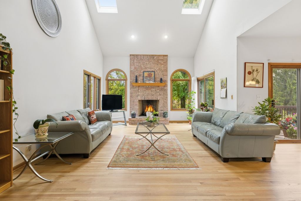 Custom built, bright, 2-storey brick home on 1.5+ acres, in coveted Stonehaven subdivision of Long Grove. Front yard has mature trees and house backs up to beautiful views of conservancy land with a mixture of trees, prairie, wetlands. 4 good sized bedrooms, 3 updated FULL bathrooms (one on main level), 9 ft ceilings thru out, valuted ceiling in Living room and tray ceilings in 3 bedrooms, 3-car side load garage. New hardwood floors for entire second level and refinished hardwood floors in kitchen, family room, dining room in Sept. 2025. Impressive double story foyer with oversized arched window. Living room and formal dining room on either side of the foyer have tray ceilings with crown molding. French doors from living room lead to the office / study, which overlooks the conservancy. House has large, beautiful, arch top windows on the first floor. Kitchen has 42" cabinetry, island, granite counter tops and stainless steel appliances. Breakfast / eat-in dining has sliding doors that open to the deck. Double story Family room is bright and cheerful. Has multiple windows overlooking the backyard/conservancy and a second set of sliding doors to the deck. Features a floor-to-ceiling brick fire place, 2-brand new picture windows (Oct 2025) flanking the fireplace and two new (Sept. 2025) skylights; wet bar with shelving and cabinets. Main floor office / study adjoins the family room and overlooks the conservancy area. Main-level laundry room has a cedar coat closet, cabinets, counter space, utility tub and a large window to the treed front yard. Upstairs primary bedroom overlooks the conservancy, has new hardwood floor, tiled bathroom with a jetted tub, separate shower (April 2025), 2 separate new vanity countertops with sinks, a walk-in closet, new skylight and a window overlooking the treed front yard and a pond across the street. Three additional, generous sized bedrooms share an updated hall bath. Unfinished full basement has a lot of potential for additional living space with no property tax increase - 9 ft ceiling, brick fireplace, roughed-in plumbing. Deck offers total privacy to enjoy mature trees and a connection to nature. New Brava roof (Sept. 2025) with 50 year transferable warranty. Exterior recently painted. Subdivision is on 80+ acres, with 29 homes single entry/exit (no thru traffic), 2 nature trails, 2 lakes and a creek. Coveniently located off of Rt. 22 & Rt. 83, less than 10 minutes to Metra station, Stevenson high school, Vernon Library, I-94 exit and Rt 53. Close to Sunset foods and Deer Park shopping center. Award winning school districts - 96 (Country Meadows Elem., Woodlawn Middle) and 125 (Adlai E Stevenson High School)