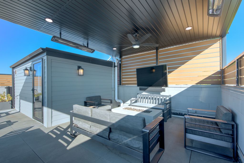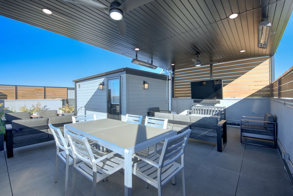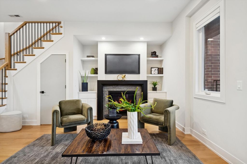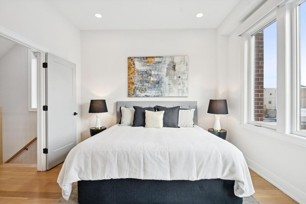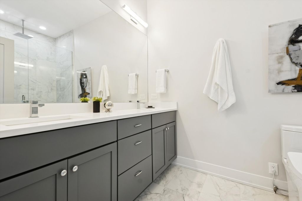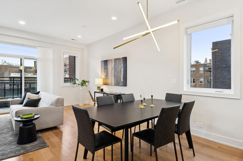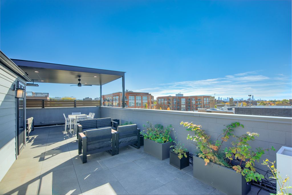 Rarely available 3 bedroom, 2.5 bathroom duplex-up penthouse with finished private roof deck in prime Andersonville / Ravenswood location in the coveted McPherson school district. If you enjoy outdoor entertaining, you will love the home's two separate outdoor spaces. The first is a 700 square foot indoor / outdoor privately accessible roof deck situated in the desirable southeast corner of the building. Impress your guests during parties with uninterrupted panoramic city and skyline views while enjoying a custom metal pergola with two ceiling fans and recessed lighting, season-extending heaters, a fire table with a dedicated natural gas line, and a 65" Samsung Terrace outdoor TV and soundbar. For the second outdoor space, enjoy a cup of coffee while the sun rises each morning on the east-facing 125 square foot terrace, which is seamlessly integrated with the home's main living area. Step inside the home for the best in modern and intimate luxury living. This corner penthouse unit provides unparalleled privacy in the back of the building away from Ashland Ave. and mere steps from bustling Clark St. The home beams with sunlight from large windows which provide both south and east exposure. This spacious condo features 5'' wide-plank white oak floors throughout with an open, flexible space perfect for living and entertaining. Enjoy the center island kitchen with 42'' custom matte black cabinets, white quartz counters with a waterfall edge, LED under cabinet lighting, and stainless steel appliances. The sunny living room is centered on a beautiful built-in gas fireplace with custom side cabinetry and a stylish gray marble mantle perfect for those cozy winter nights. Retreat upstairs to the primary suite featuring a large main room, walk-in closet with floor to ceiling storage, and a luxurious en-suite bath with white quartz double vanity countertop, Grohe fixtures, heated towel rack, Toto washlet and large custom glass shower. Identical sized second and third bedrooms have ample space and custom closets. Lovely hall bath with glossy subway tile shower and tub. Laundry and mechanicals are tucked away at end of hall on second floor. A second white oak and matte black metal rail staircase leads to third floor space with wine fridge that can easily become a home office. Additional features include maximized organization with built-out closets in every room, Toto toilets in each bathroom, convenient in-unit laundry, a secure attached heated garage parking space, and even a heated driveway! Don't let the Ashland address fool you, it's incredibly quiet inside this newer construction (2020) solid masonry building with spray foam insulation and light weight concrete poured in between units for sound reduction. Andersonville, rich in Swedish heritage and voted the second coolest neighborhood in the world by TimeOut magazine, is renowned for its eclectic mix of independent shops, charming boutiques, and diverse eateries, offering residents a truly unique urban village experience. Walk or bike from this beautiful home to the Argyle CTA Red Line stop, Ravenswood Metra Station, Lakeshore Path, and Foster / Montrose Beaches. Steps from all of the restaurants and shops: Hopleaf, Bar Roma, Meetinghouse, Marty's, Calo, Jeni's Ice Cream, local coffee shops, Orange Theory, LA Fitness and much more. Schedule your private showing of this amazing home today!